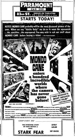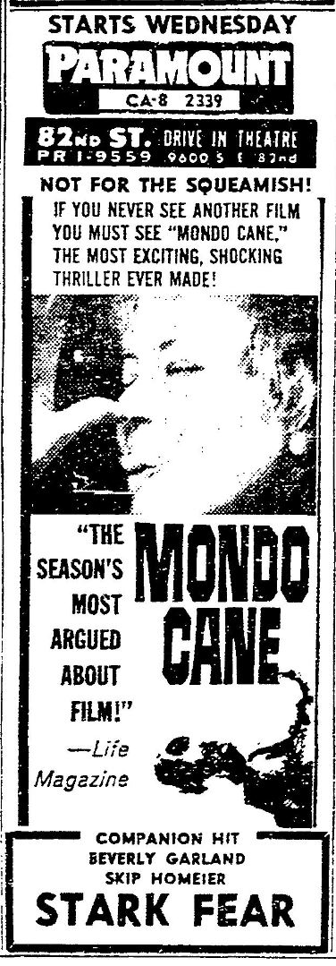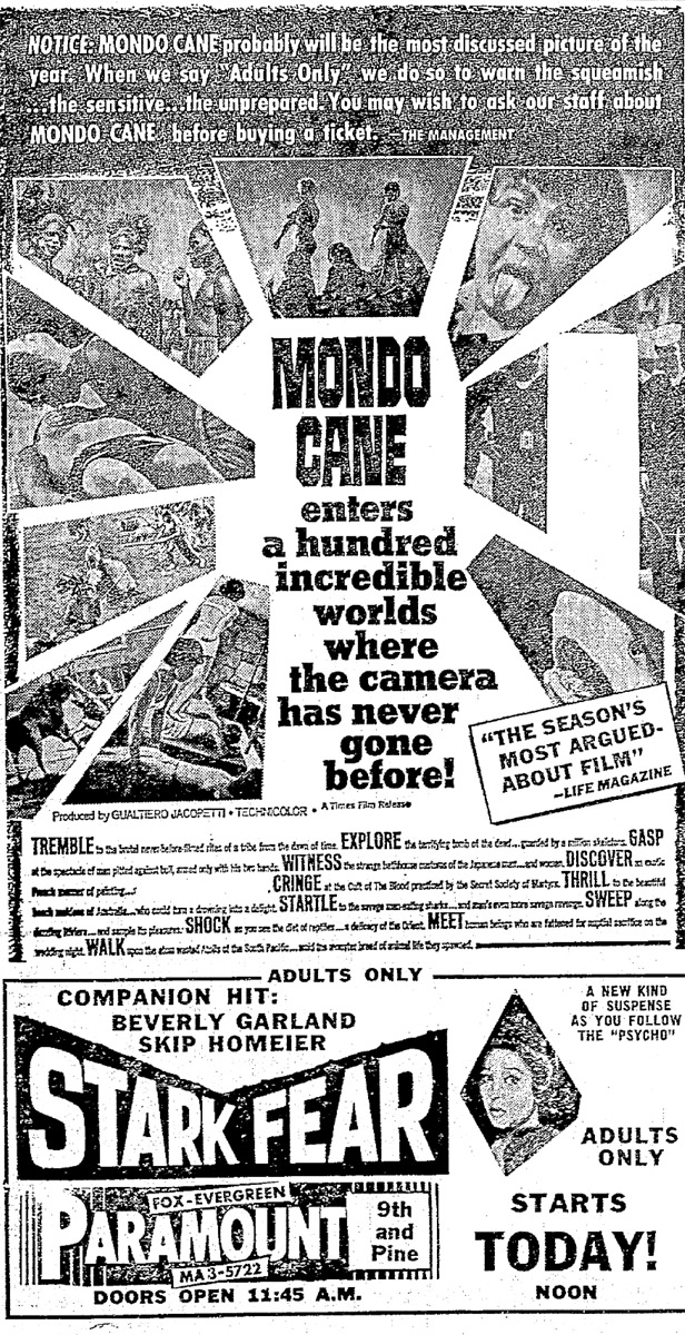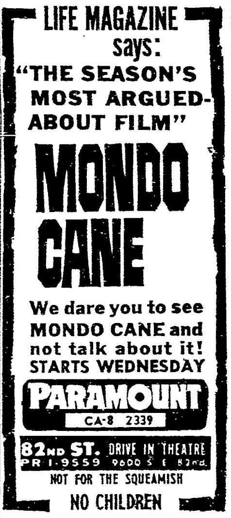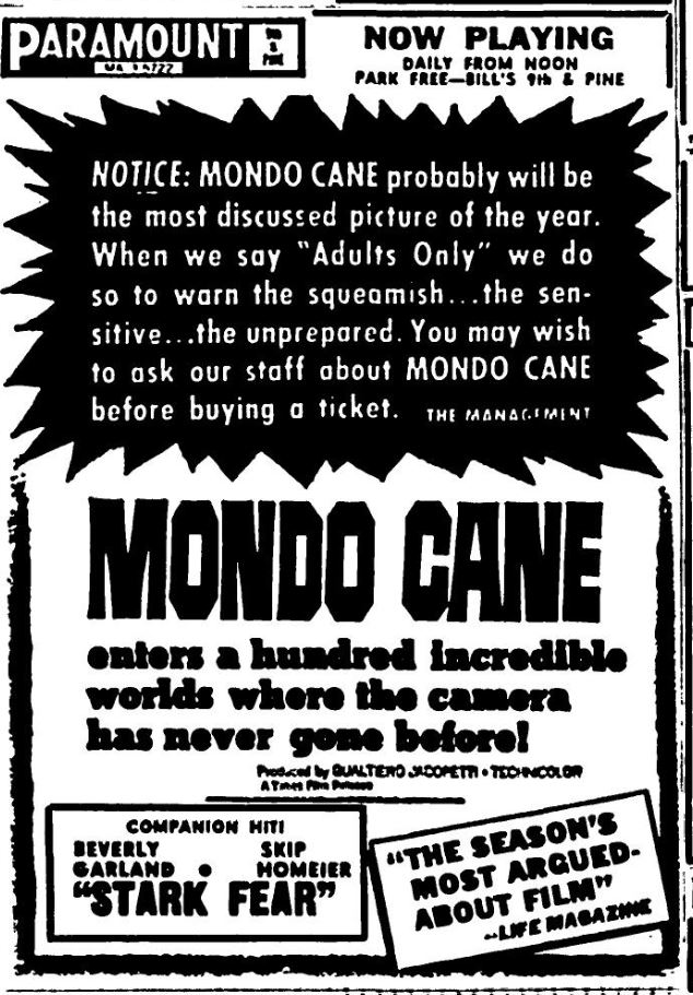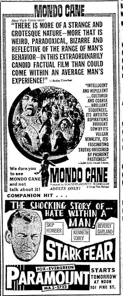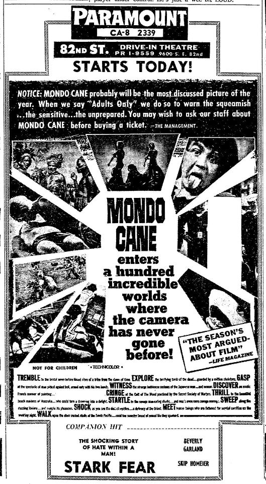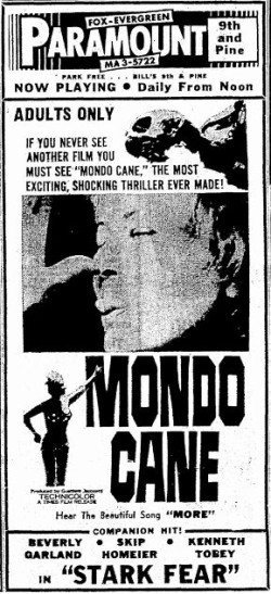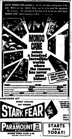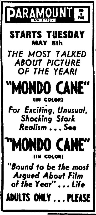 This is a collection of media from the initial runs of of "Mondo Cane" (1962) in the Pacific Northwest.Â