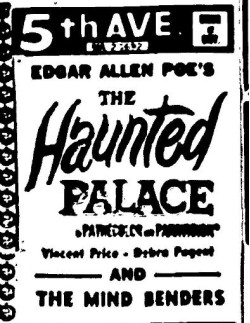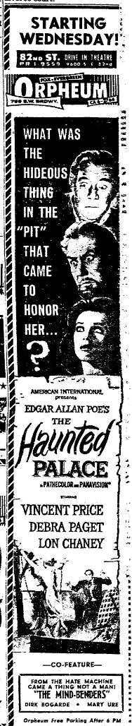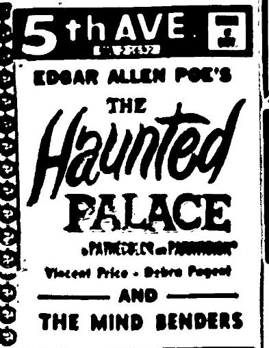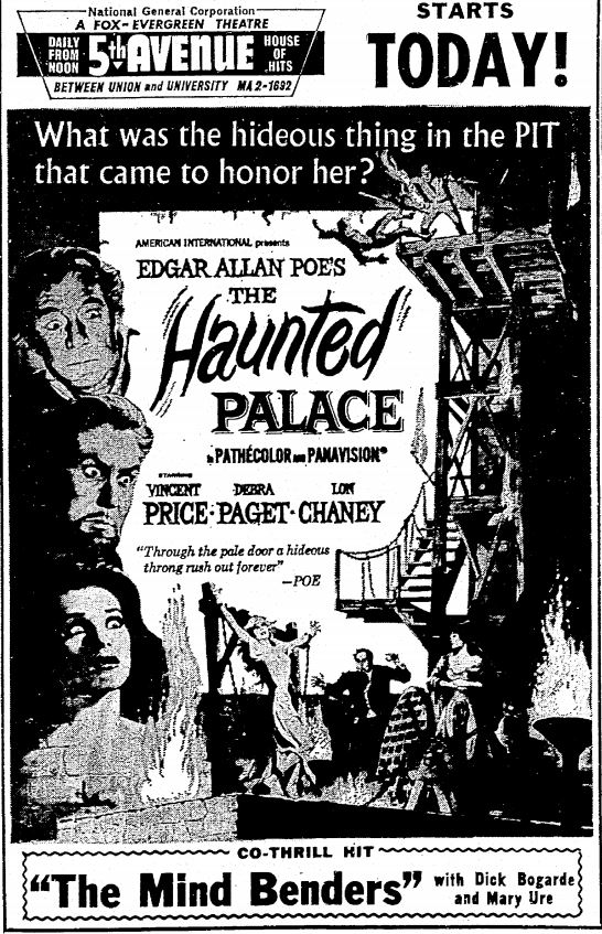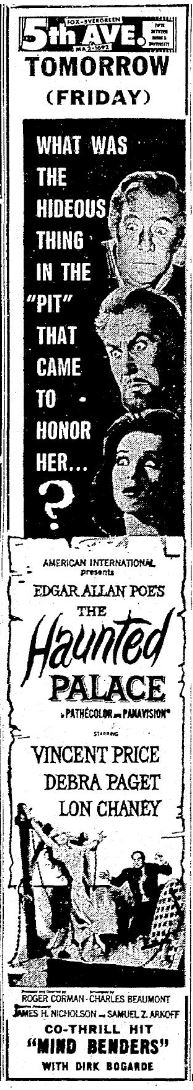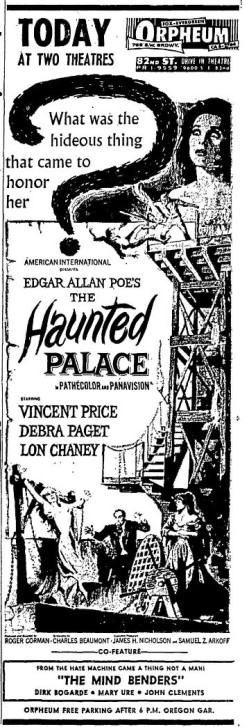 This is a collection of media from the initial runs of "The Haunted Palace" (1963) in the Pacific Northwest." "The Mind Benders" (1963) was the second feature.