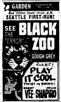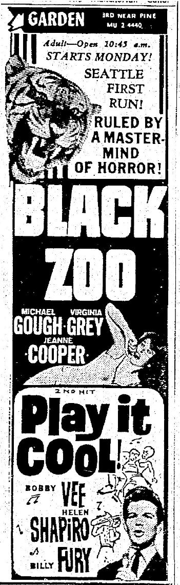 "The Black Zoo" didn't make it to Portland until 1965. It ran then as the second feature to "Two on a Guillotine."