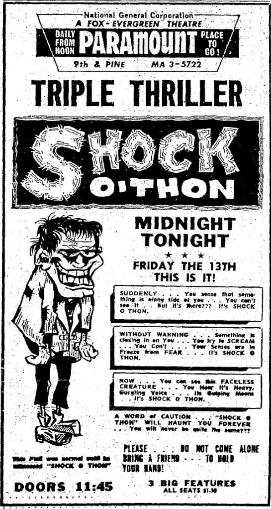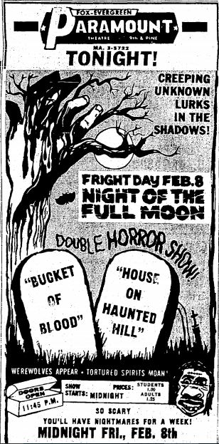 December 13, 1963 ad (Seattle) - Another event at the Paramount, this one for Friday the 13th. I always ask if anyone went to these things but so far no. It would be nice to know some specifics :)