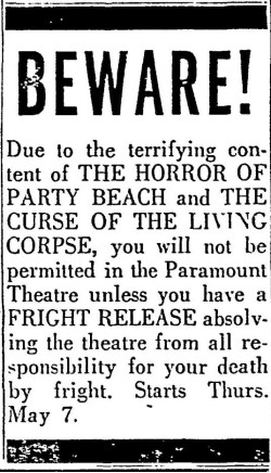 Buy "The Horror of Party Beach/Curse of the Living Corpse" (1964) DVD on Amazon (SPONSORED)