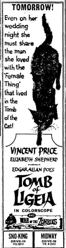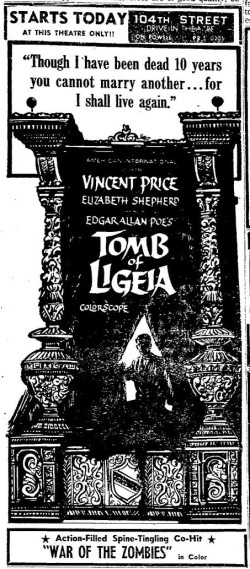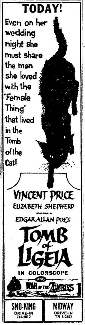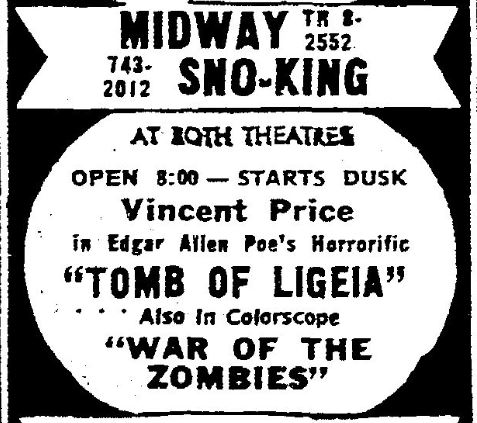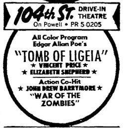 This is a collection of media from the initial runs of "Tomb of Ligeia" (1964) in the Pacific Northwest. "War of the Zombies" rounded off this double-bill.