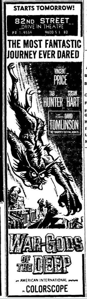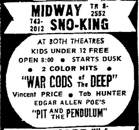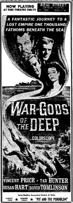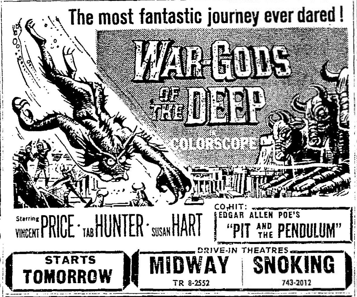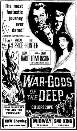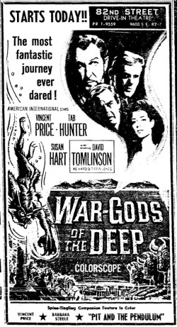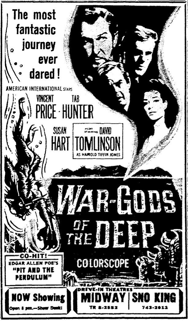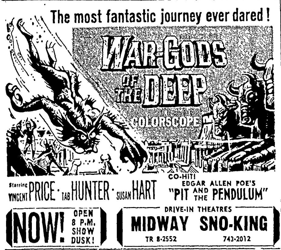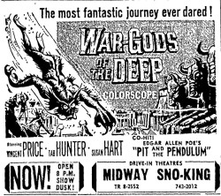 This is a collection of media from the initial runs of "War Gods of the Deep" (1965) in the Pacific Northwest. "The Pit and the Pendulum" (1961) was the second feature.
