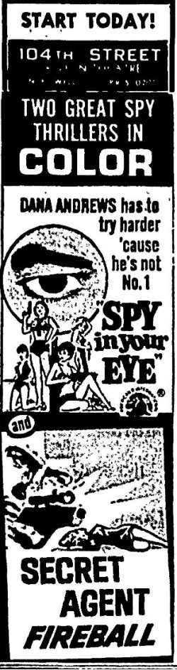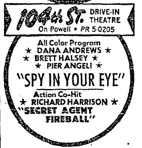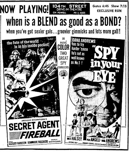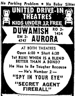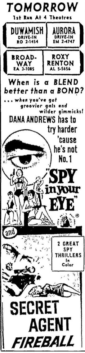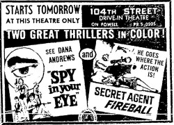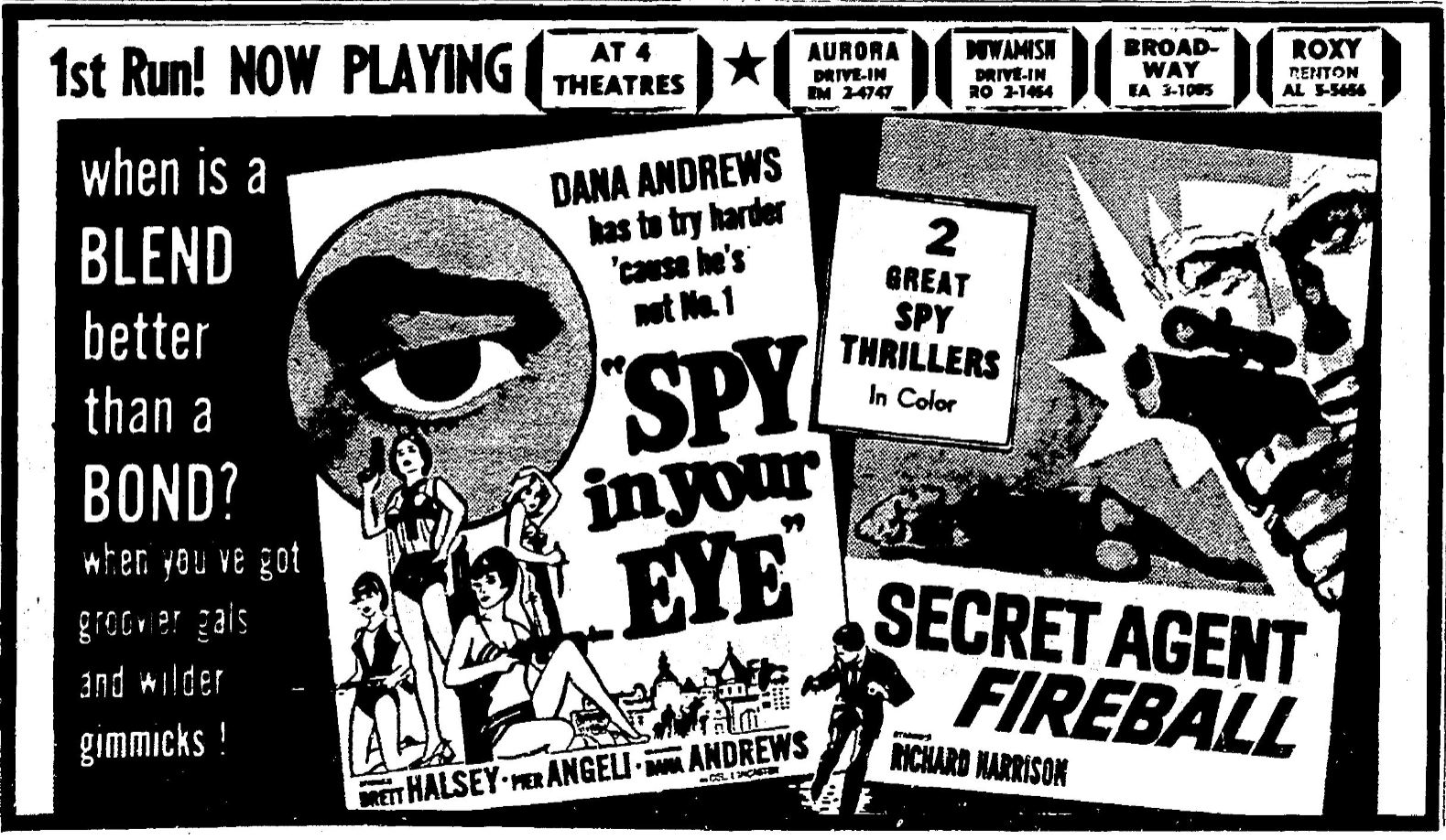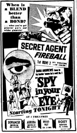 This is a collection of media from the initial runs of "Spy In Your Eye" and "Secret Agent Fireball" (1965) in the Pacific Northwest.