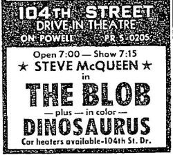 This is a collection of media from the 1966 Allied Artists distributed reissue run of "The Blob" (1958) and "Dinosaurus!" (1960) in the Pacific Northwest.