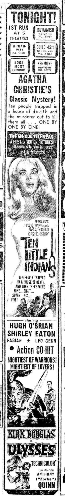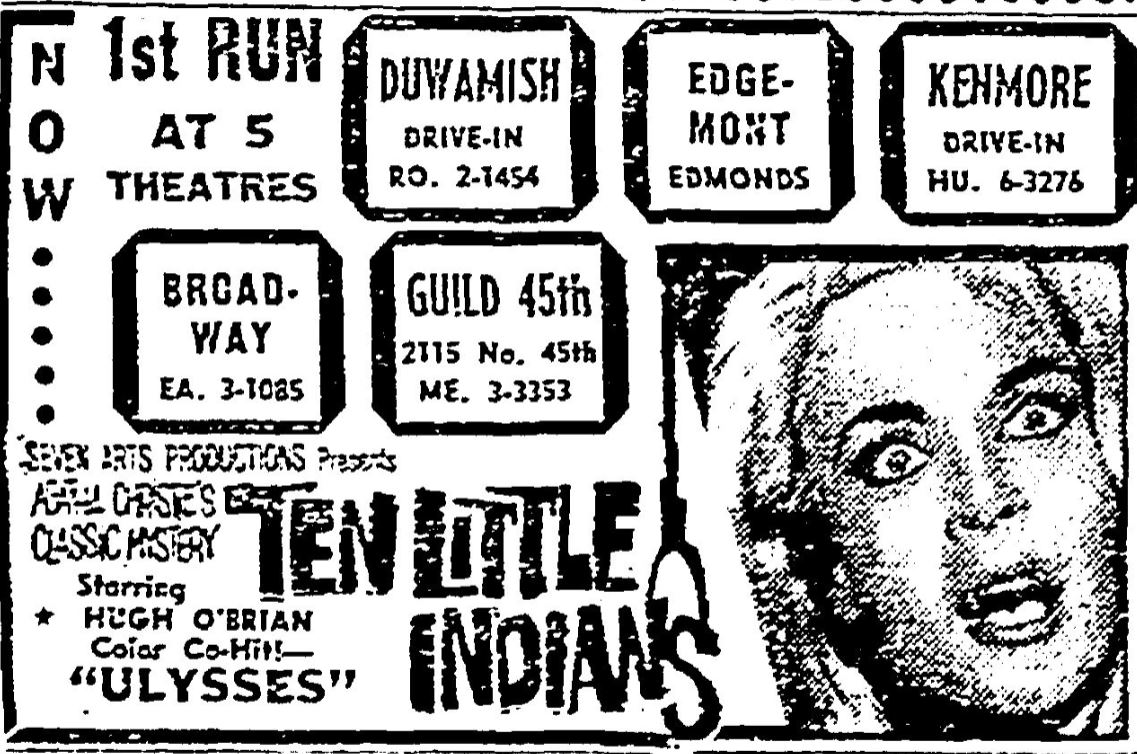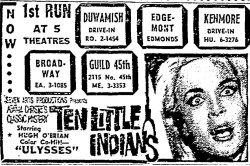 This is a collection of media from the initial runs of "Ten Little Indians" (1965) in the Pacific Northwest.