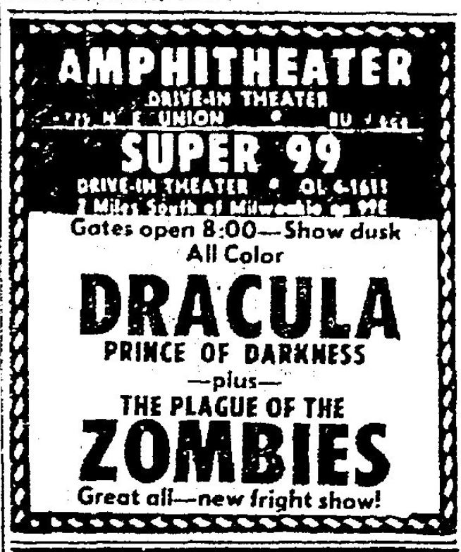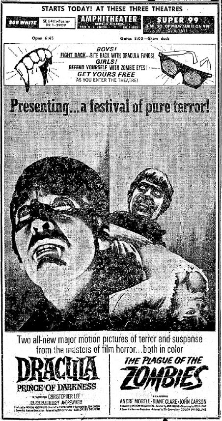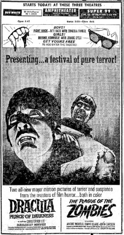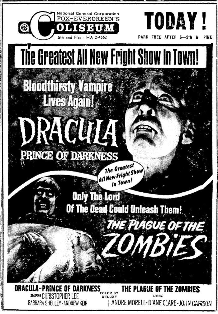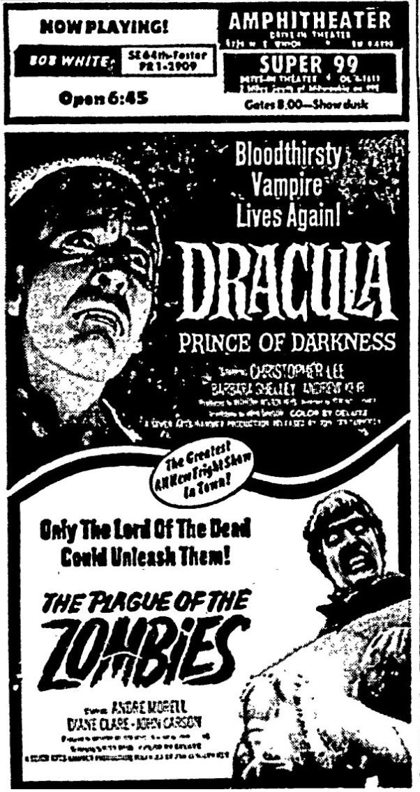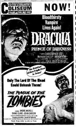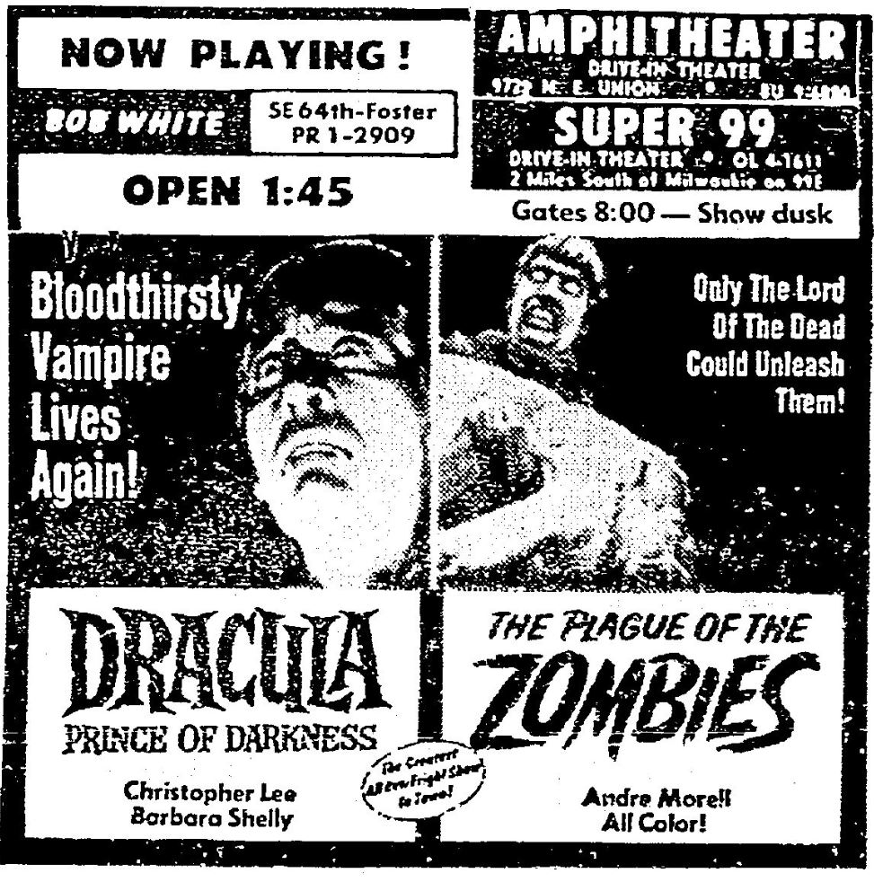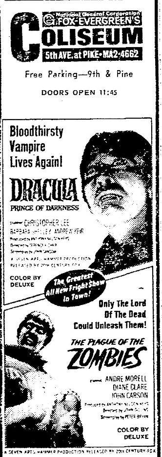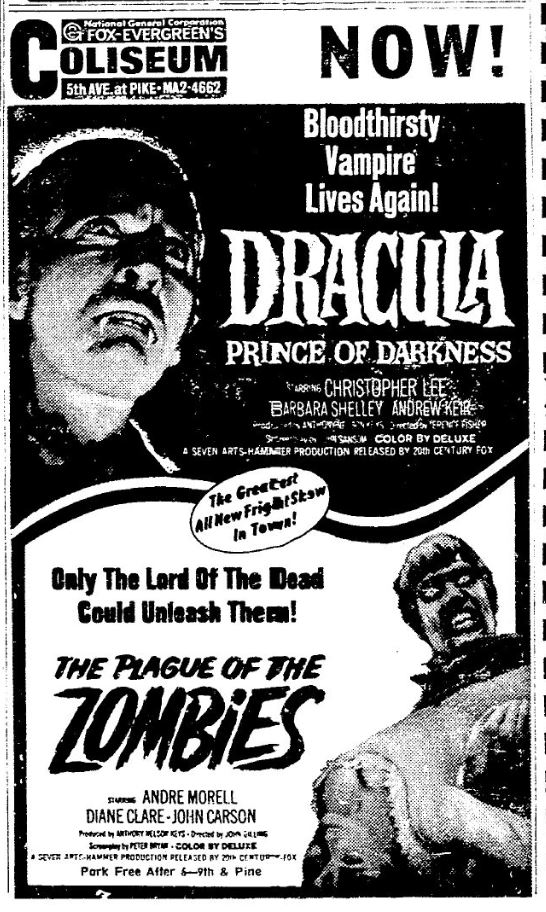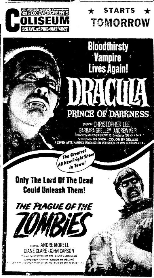 This is a collection of media from the initial runs of "Dracula: Prince of Darkness" and "The Plague of the Zombies" (1966) in the Pacific Northwest.
