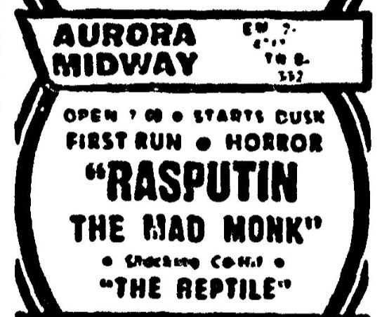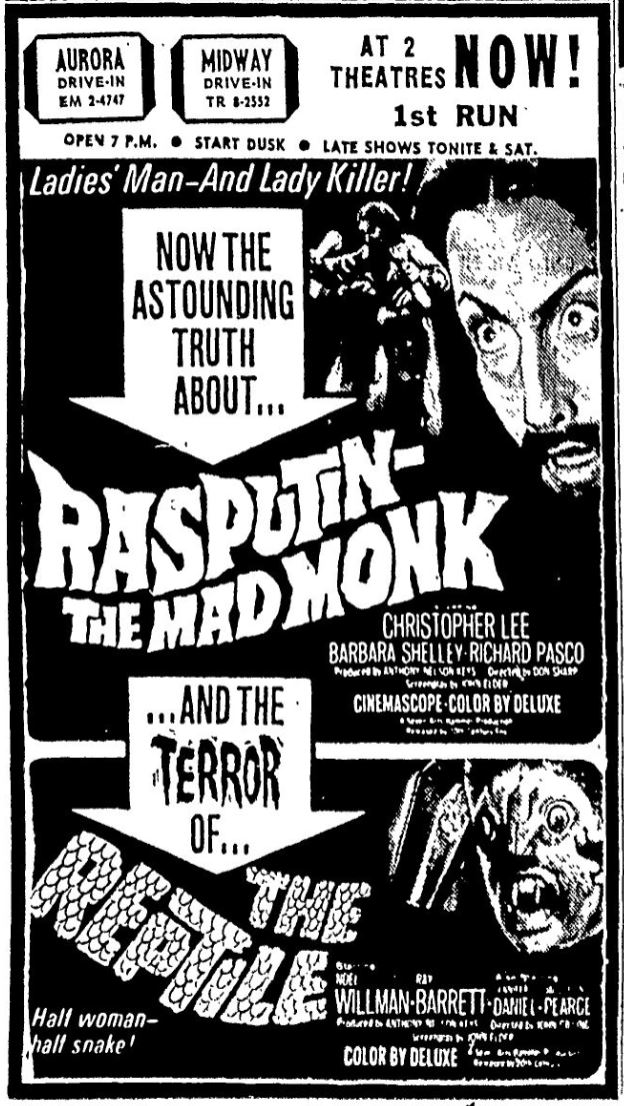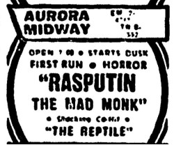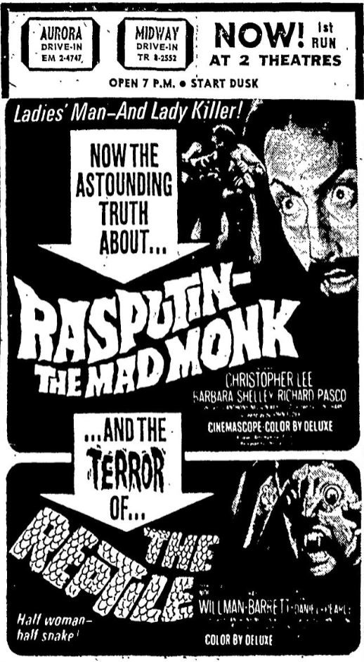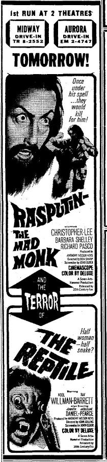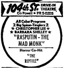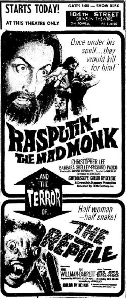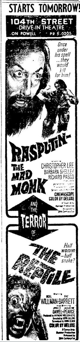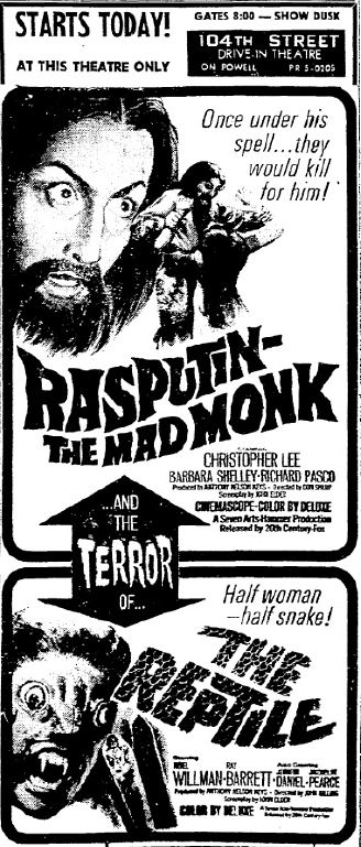 This is a collection of media from the initial runs of "Rasputin: The Mad Monk" and "The Reptile" (1966) in the Pacific Northwest.