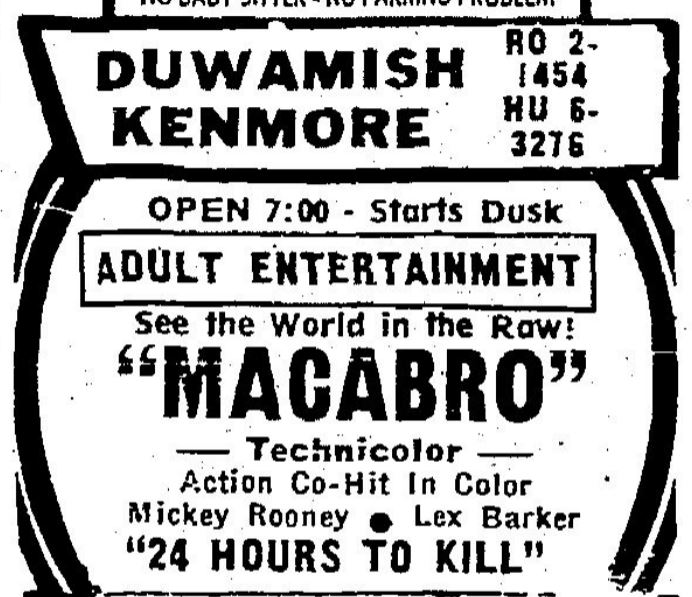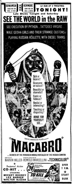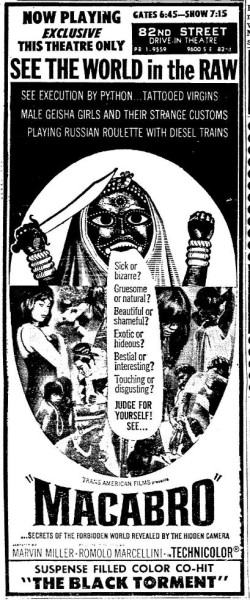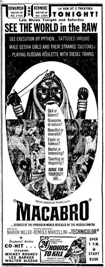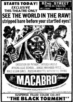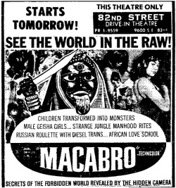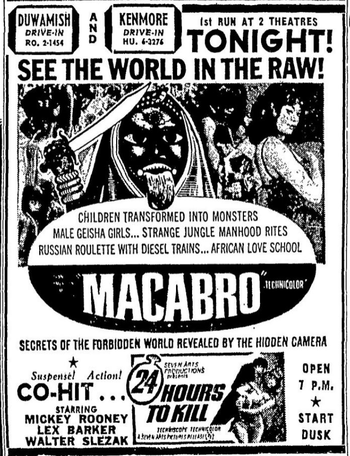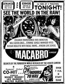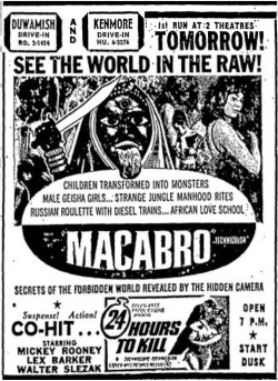This is a collection of media from the initial runs of "Macabro" (1966) in the Pacific Northwest.
