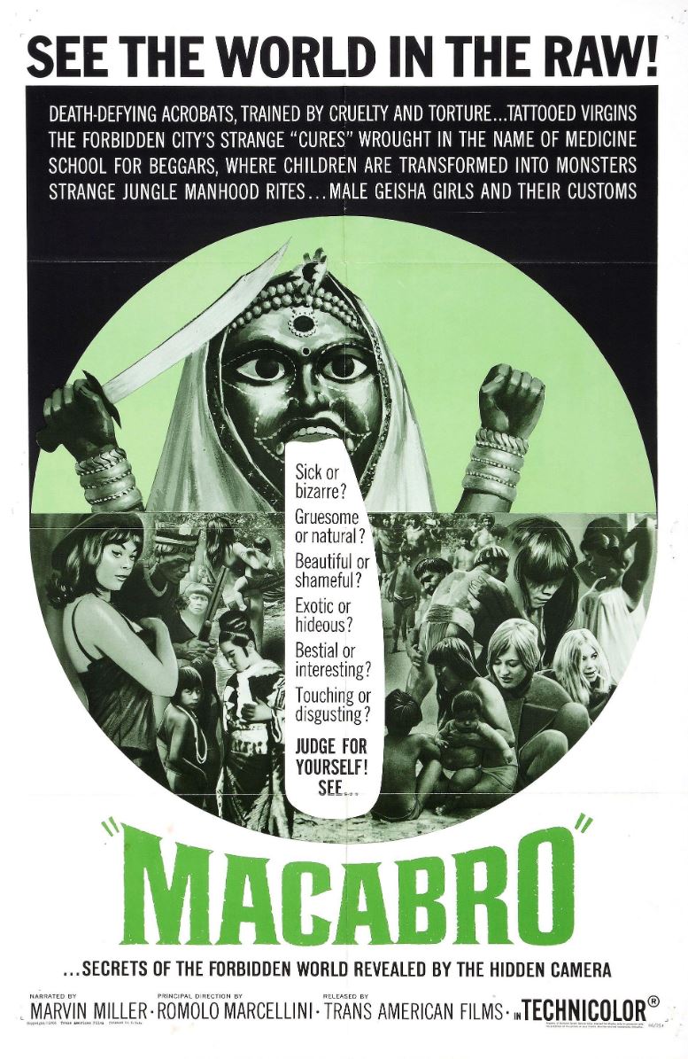 "Macabro" is a provocative Italian documentary directed by Romolo Marcellini. The film is part of the "Mondo" genre, which explores various cultural practices and rituals worldwide, often with a sensationalist and sometimes exploitative approach.