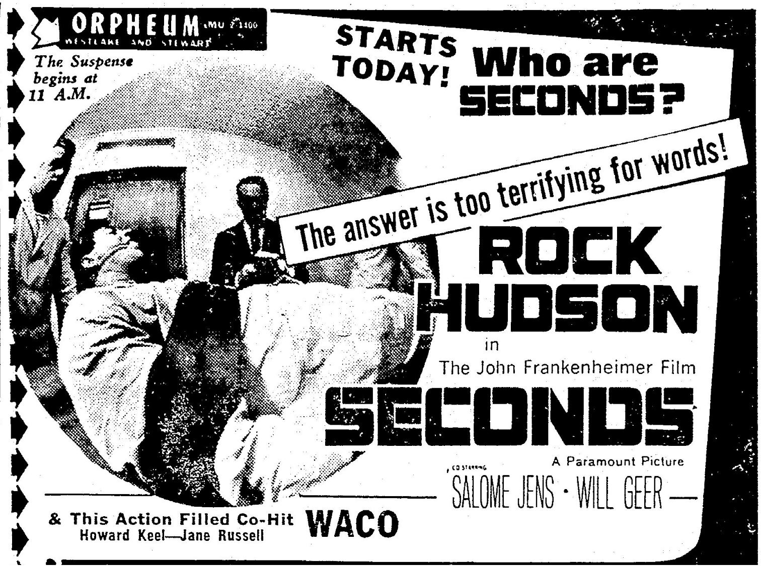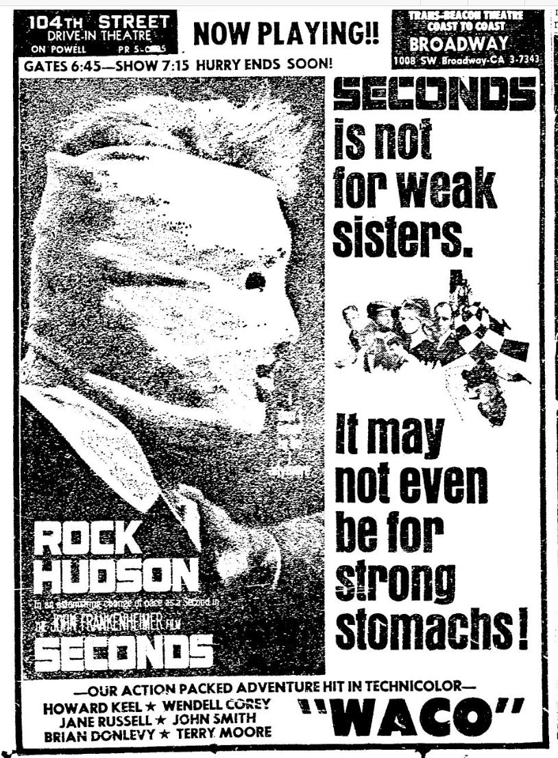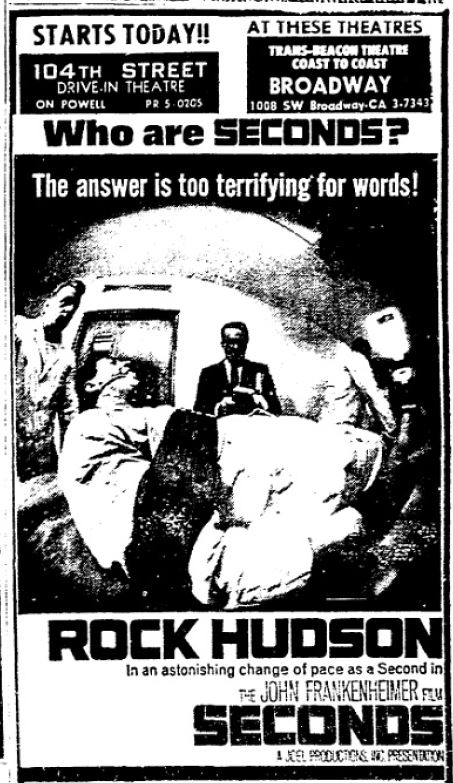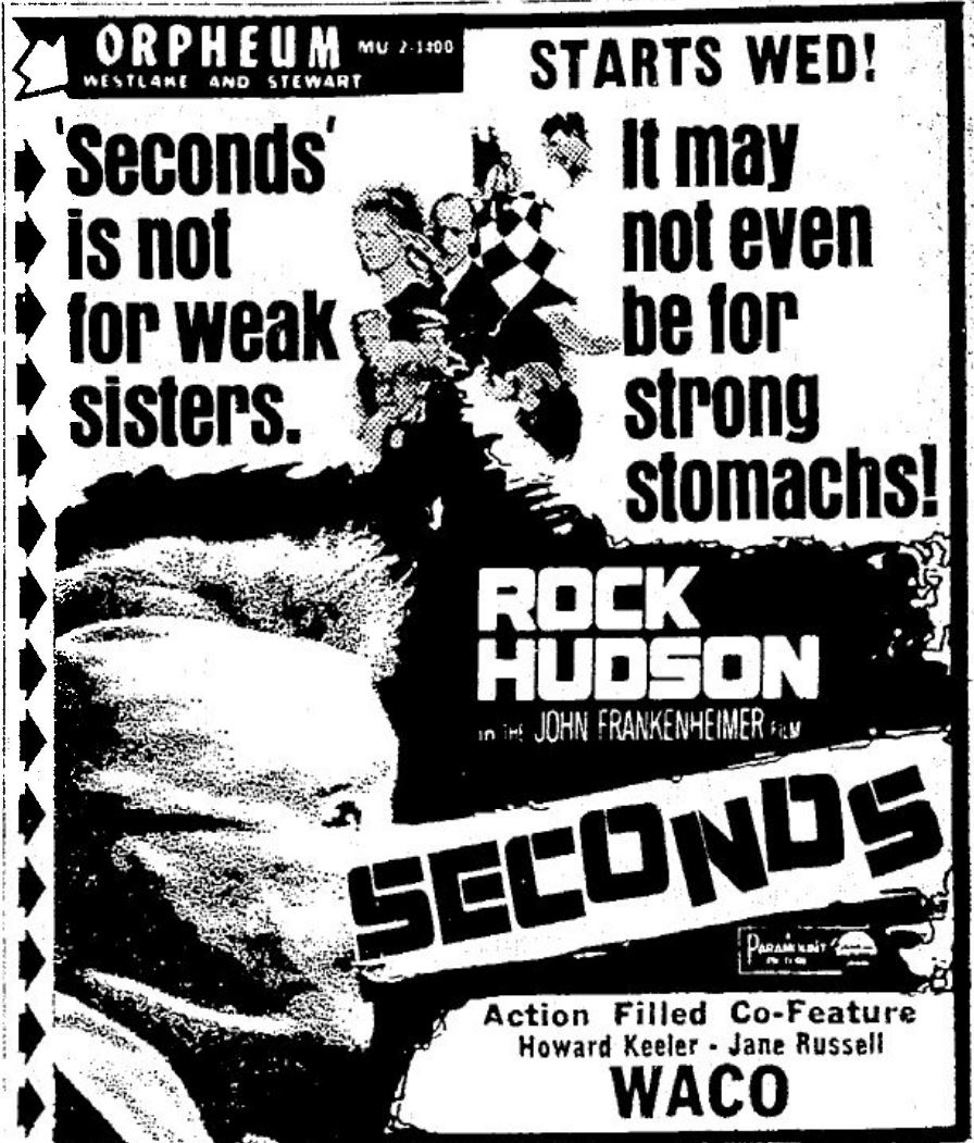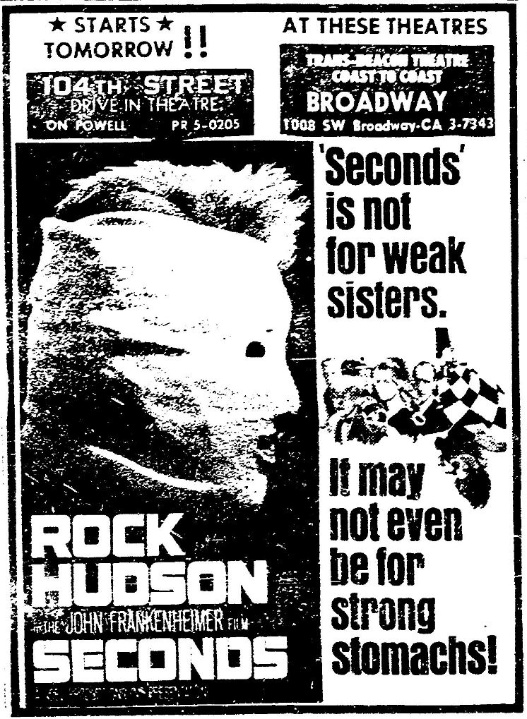 This is a collection of media from the initial runs of "Seconds" (1966) in the Pacific Northwest.