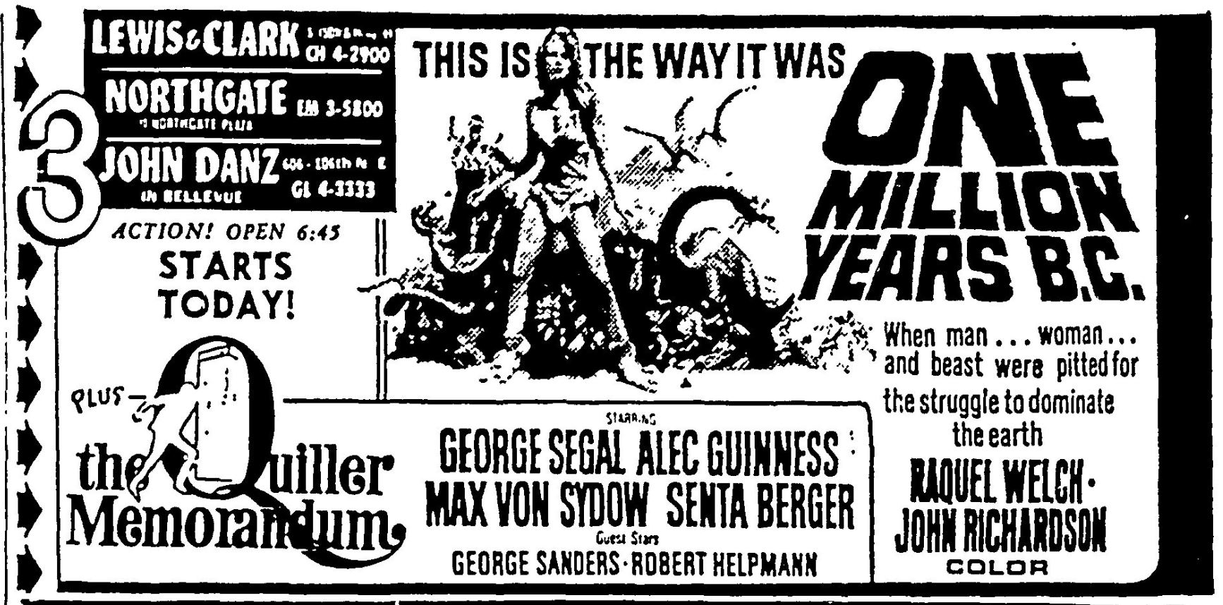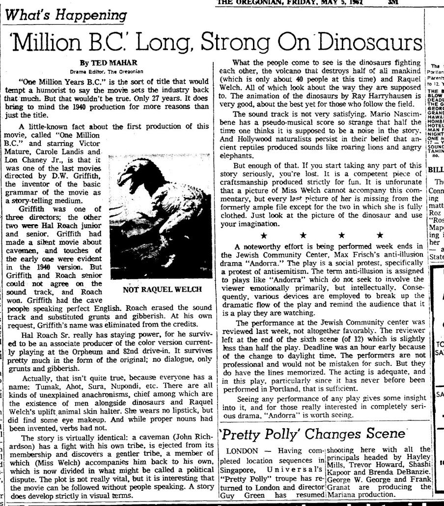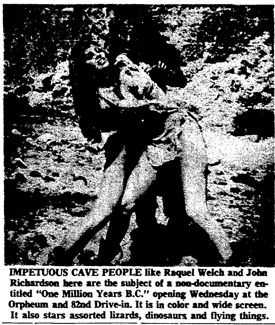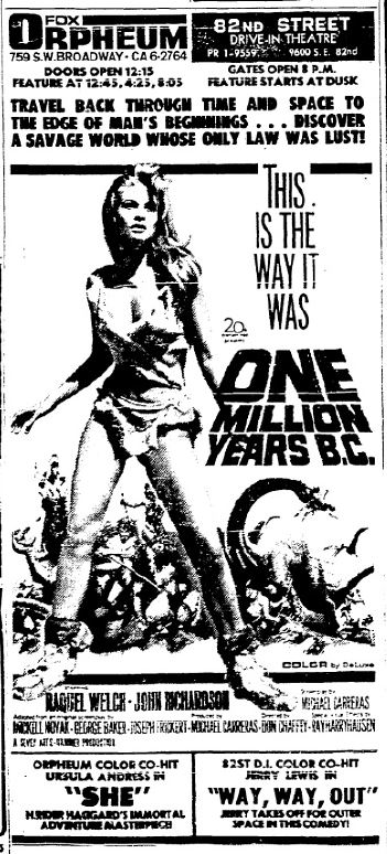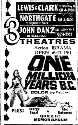 This is a collection of media from the initial runs of "One Million Years B.C." (1966) in the Pacific Northwest.