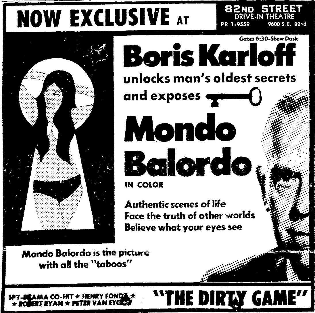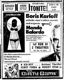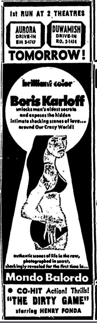 This is a collection of media from the initial runs of Mondo Balordo (1964) in the Pacific Northwest. The NW didn't get the film during its first run but received the 1967 Crown International re-release.