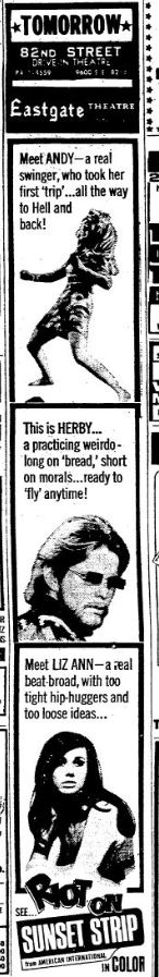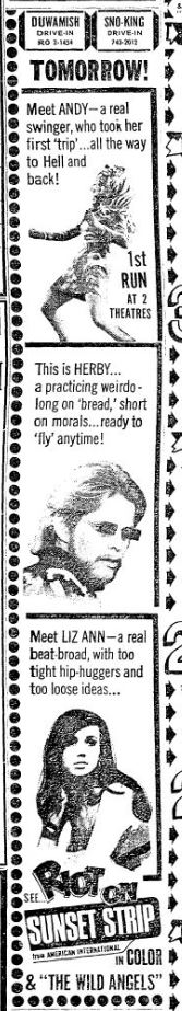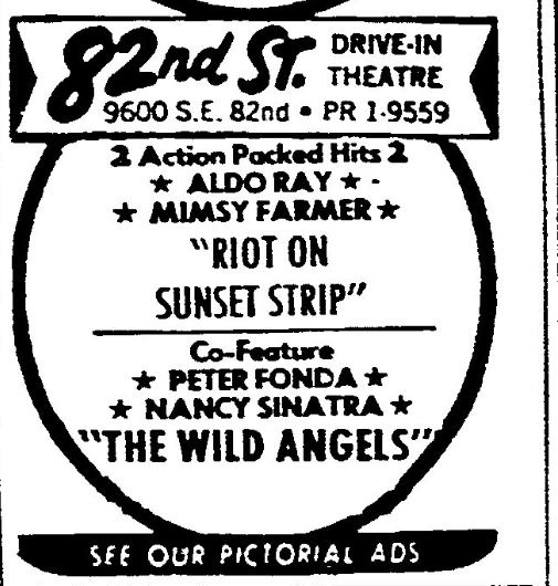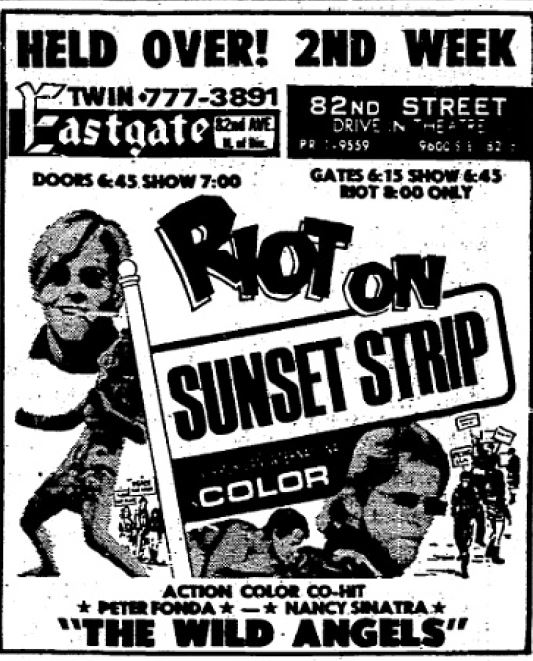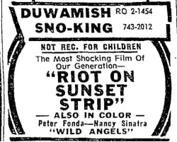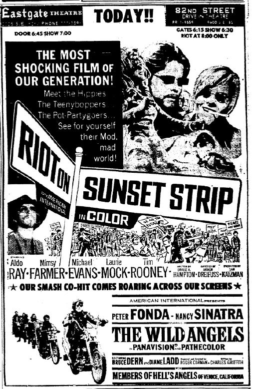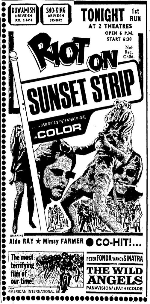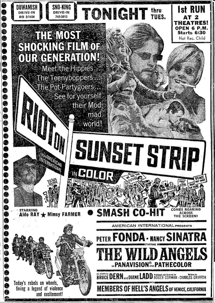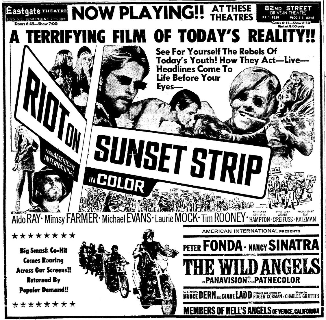 This is a collection of media from the initial runs of "Riot on Sunset Strip" (1964) in the Pacific Northwest. "The Wild Angels" (1966) returned as the second feature.