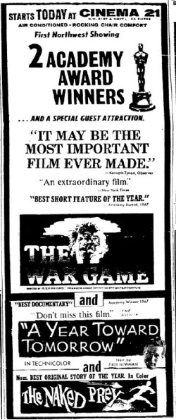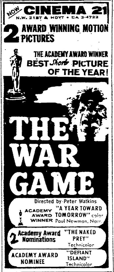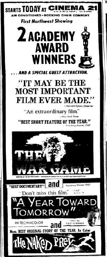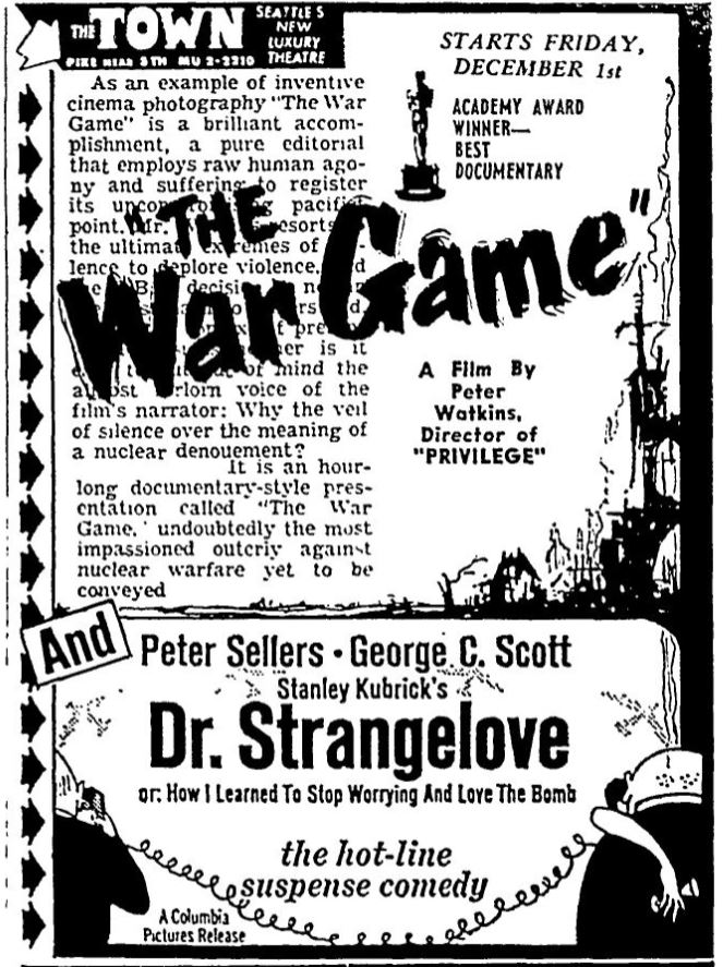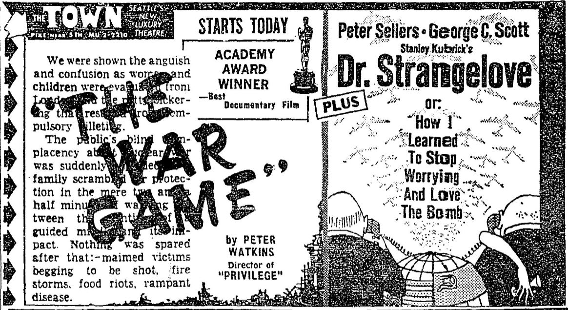 This is a collection of media from the initial runs of "The War Game" (1966) in the Pacific Northwest.