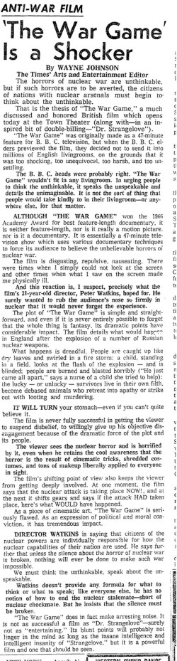 Buy "The War Game" (1966) DVD on Amazon (SPONSORED)