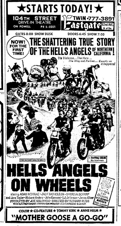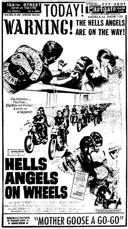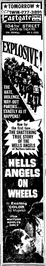 This is a collection of media from the initial runs of "Hells Angels on Wheels" (1967) in the Pacific Northwest.