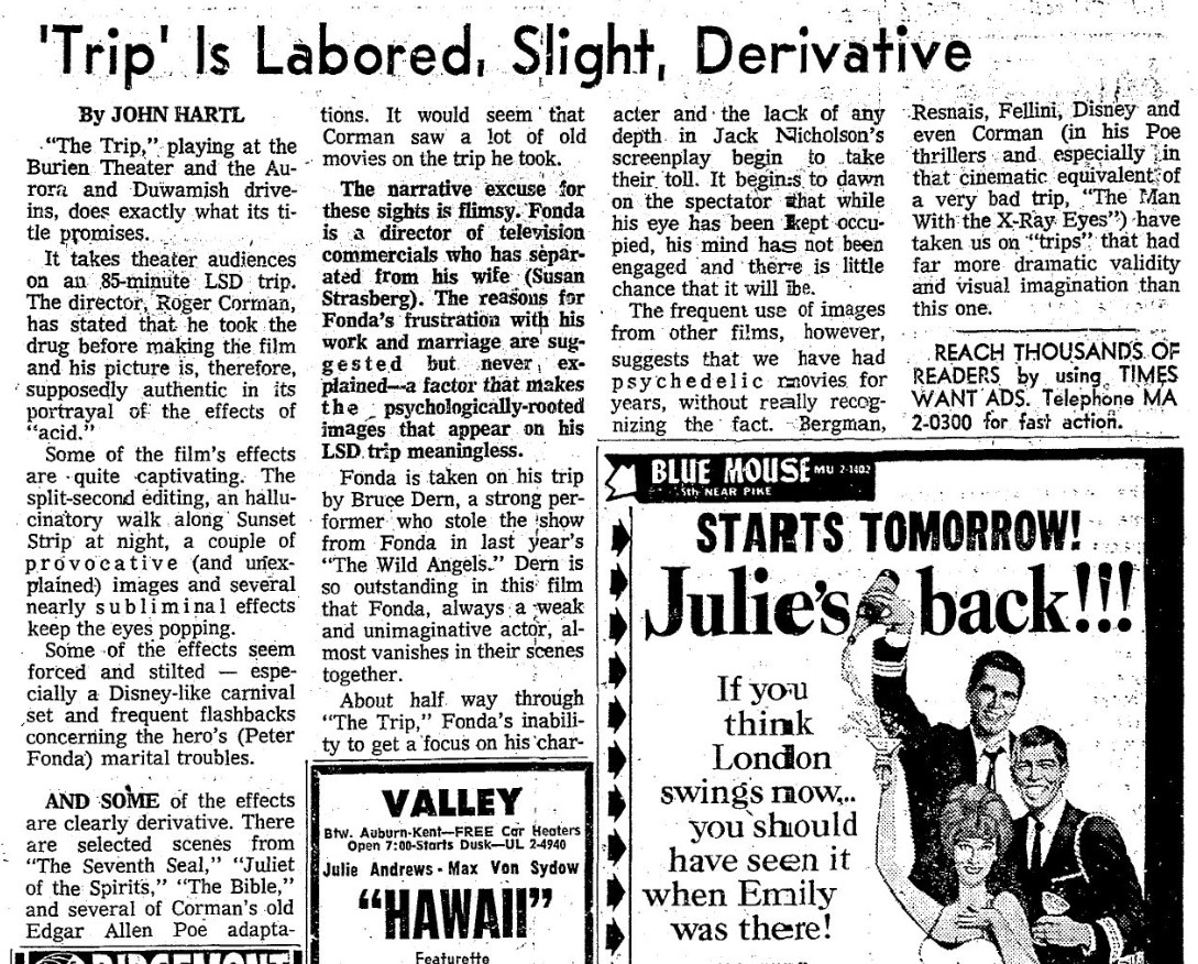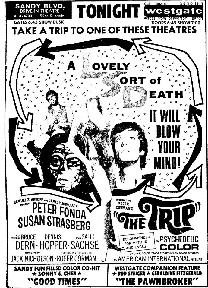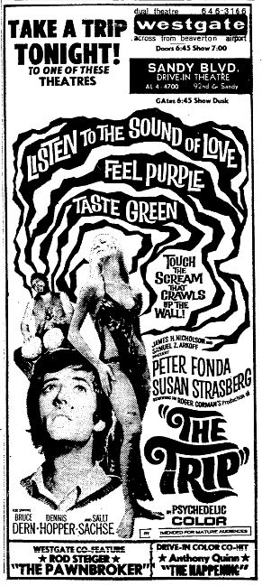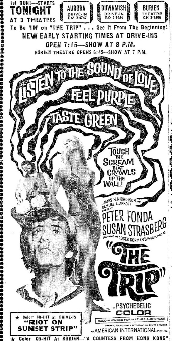 This is a collection of media from the initial runs of "The Trip" (1967) in the Pacific Northwest.