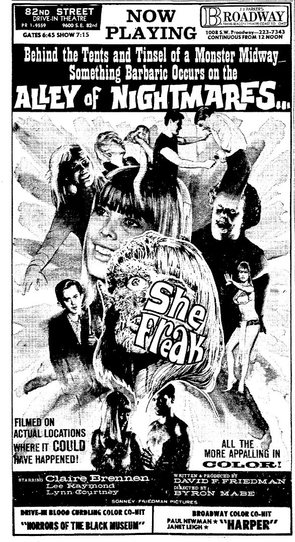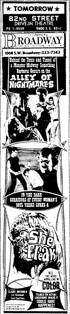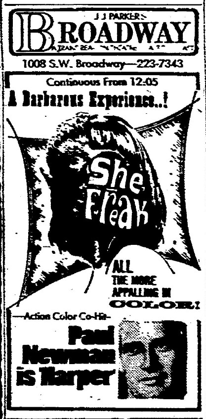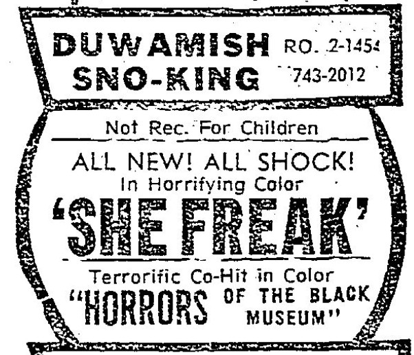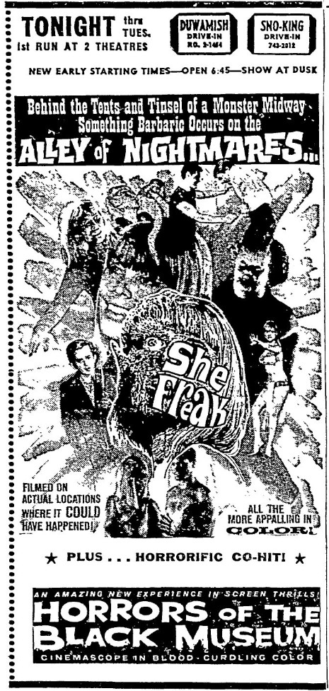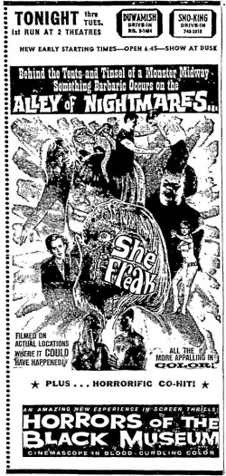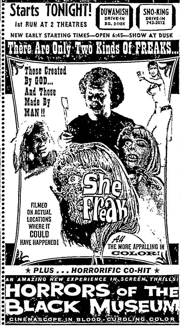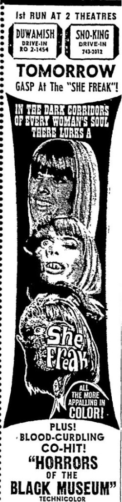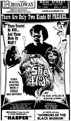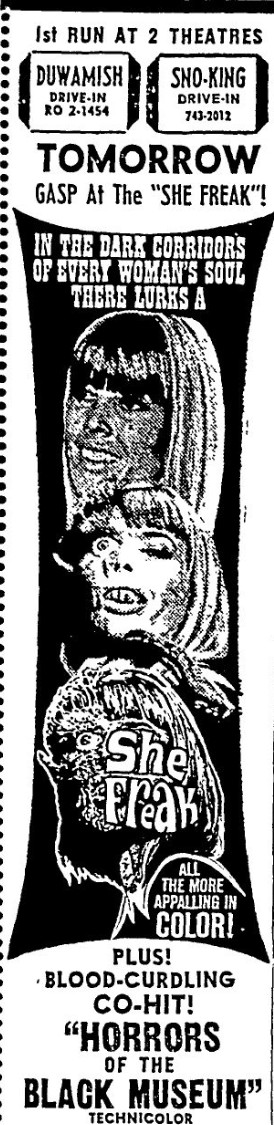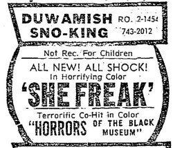 This is a collection of media from the initial runs of "She Freak" (1967) in the Pacific Northwest.