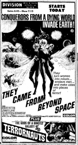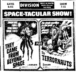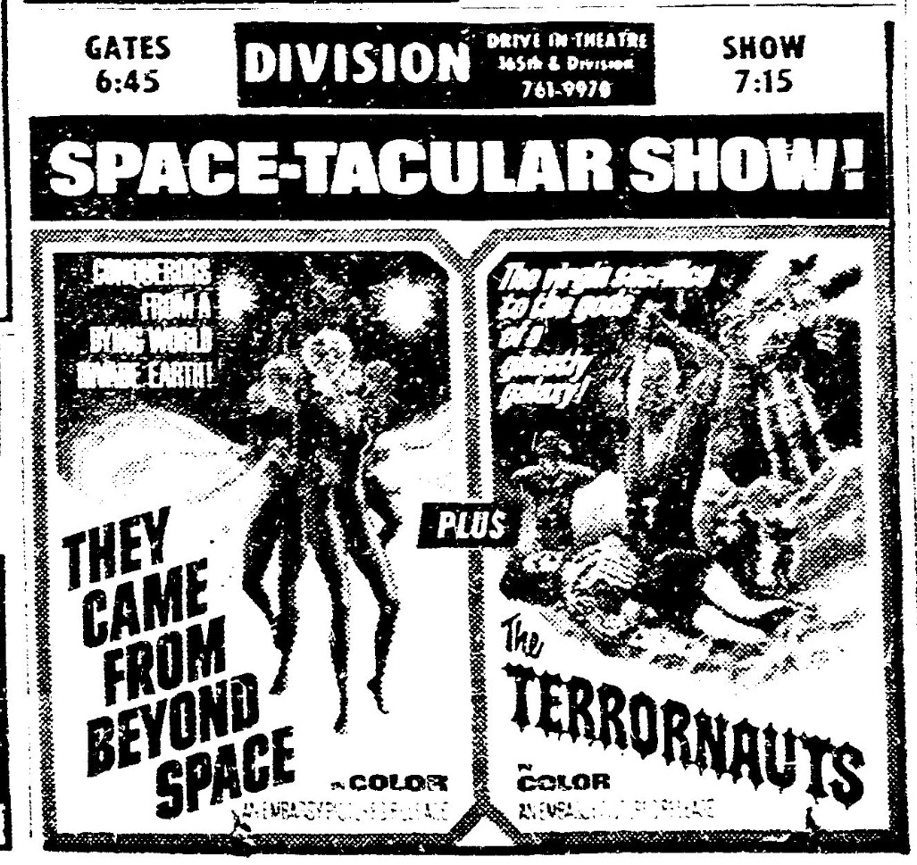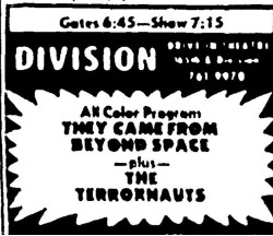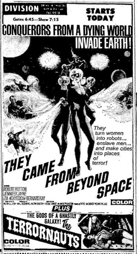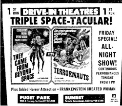 This is a collection of media from the initial runs of They Came from Beyond Space" and "Terror-Creatures from the Grave" (1965) in the Pacific Northwest., Seattle got this almost a full two years after Portland.