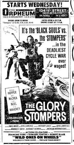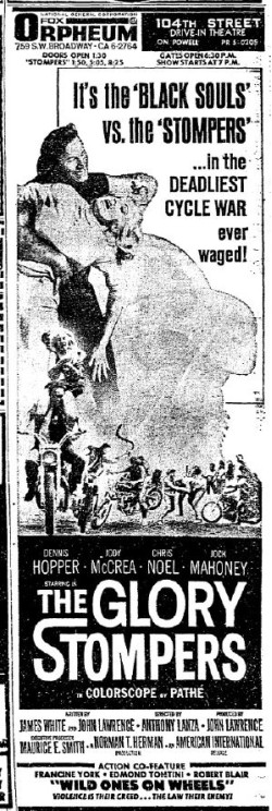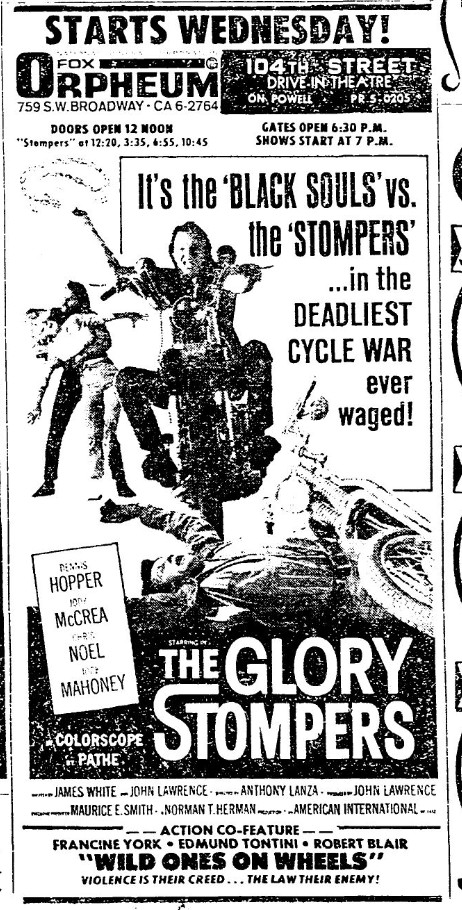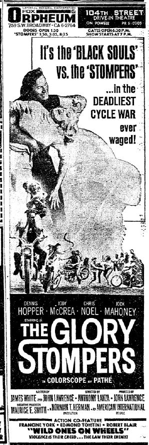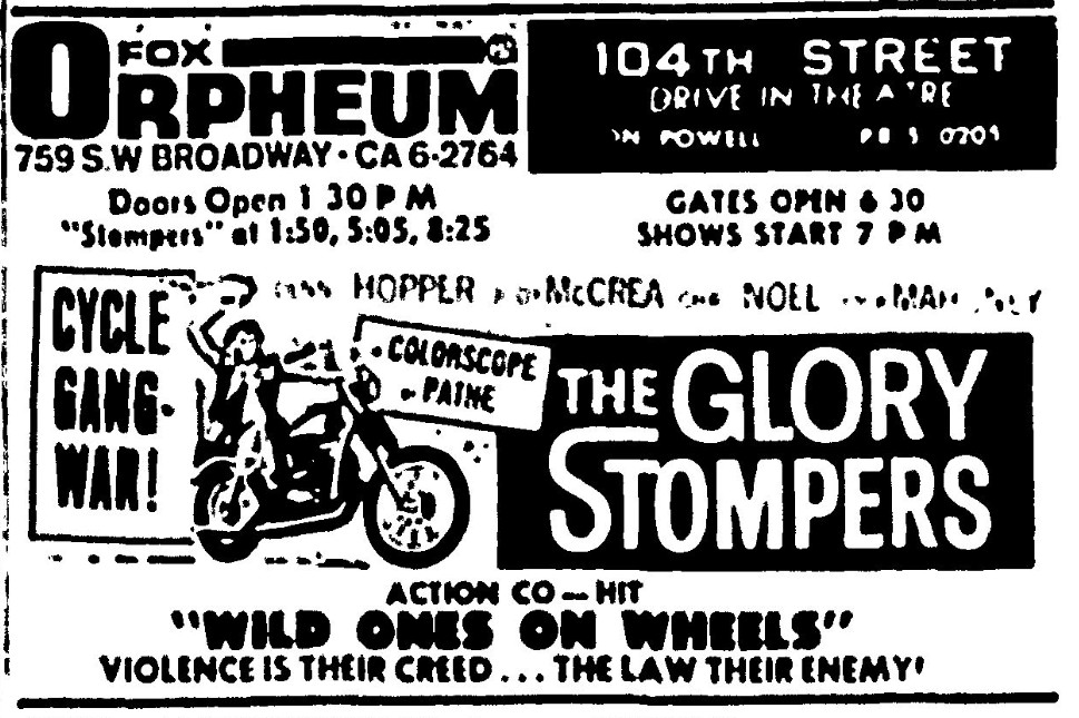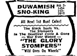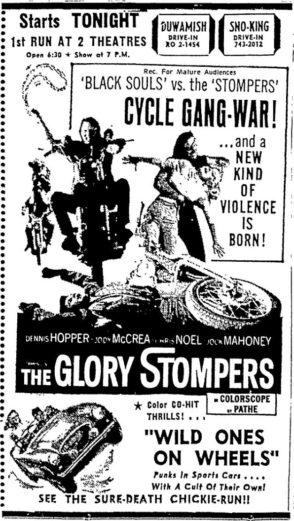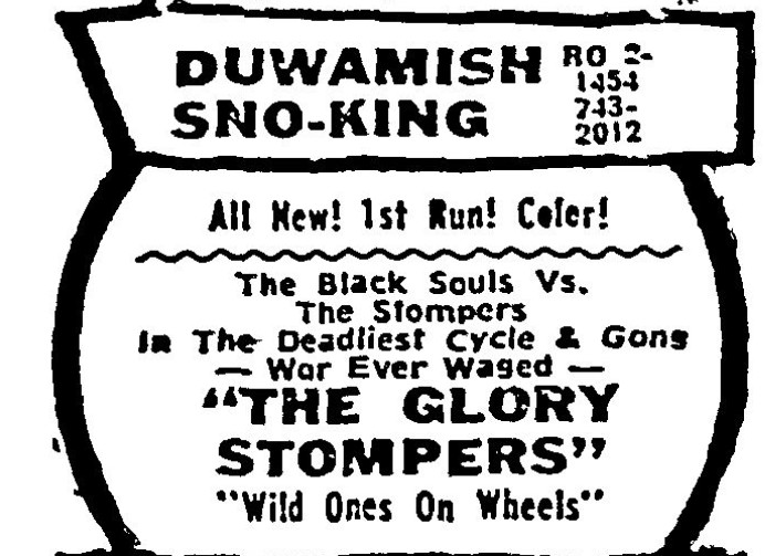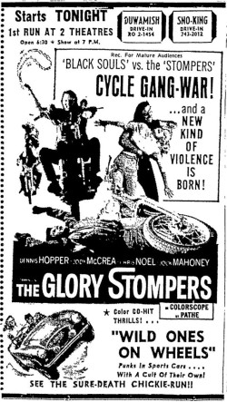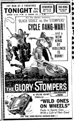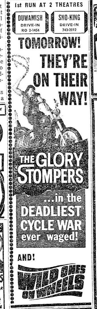 This is a collection of media from the initial runs of "The Glory Stompers" (1967) in the Pacific Northwest. "Wild Ones on Wheels" (1962) was the second feature.