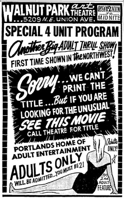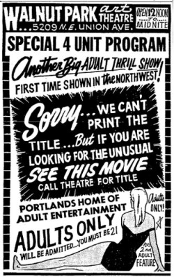On occasion, a film was run with a title too risqué to be printed in the newspaper. Alternatively, the movie was so bad that this was the only way to lure people to see it.