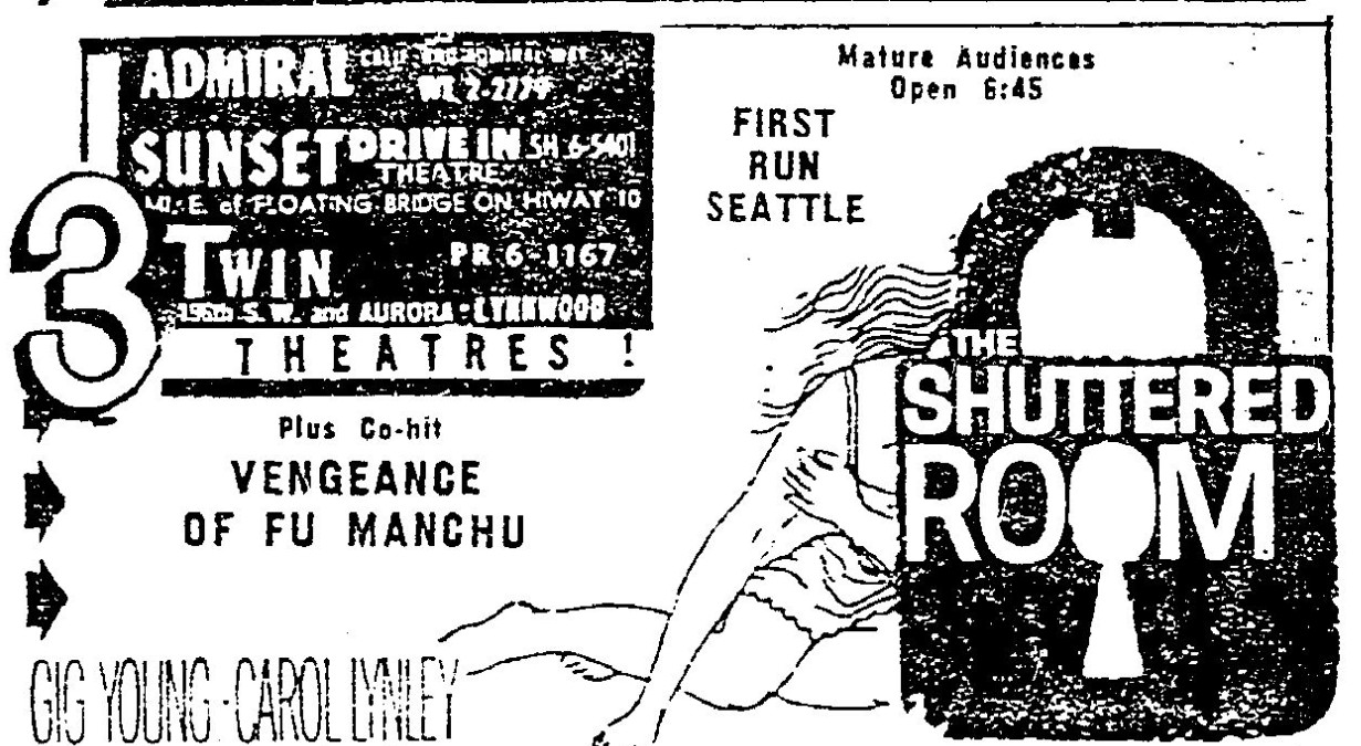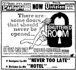 This is a collection of media from the initial runs of "The Shuttered Room" (1967) in the Pacific Northwest.