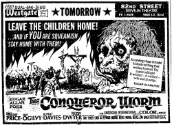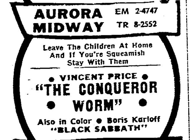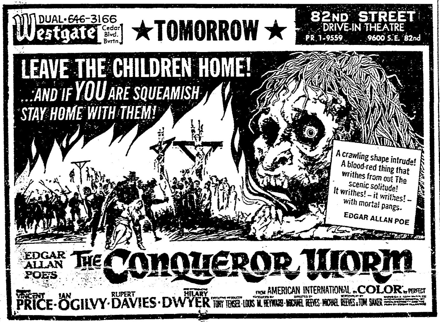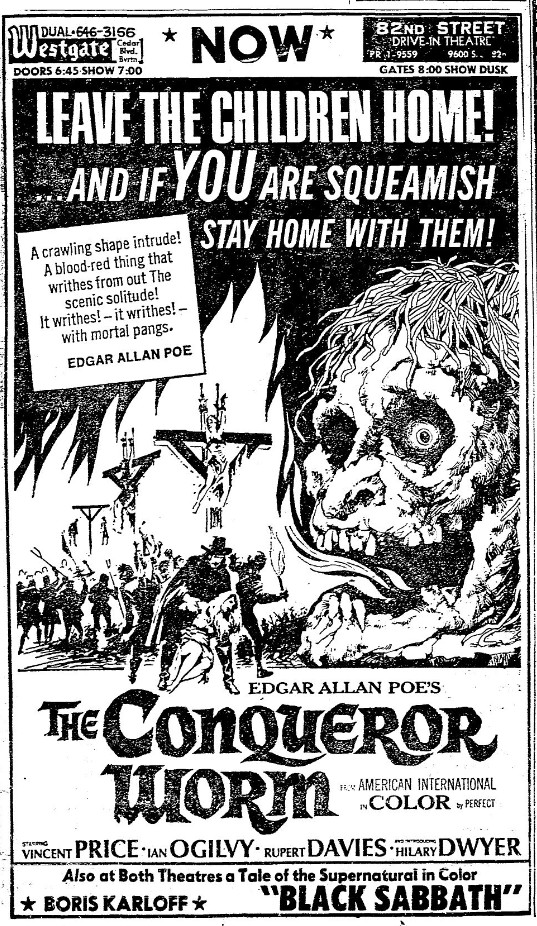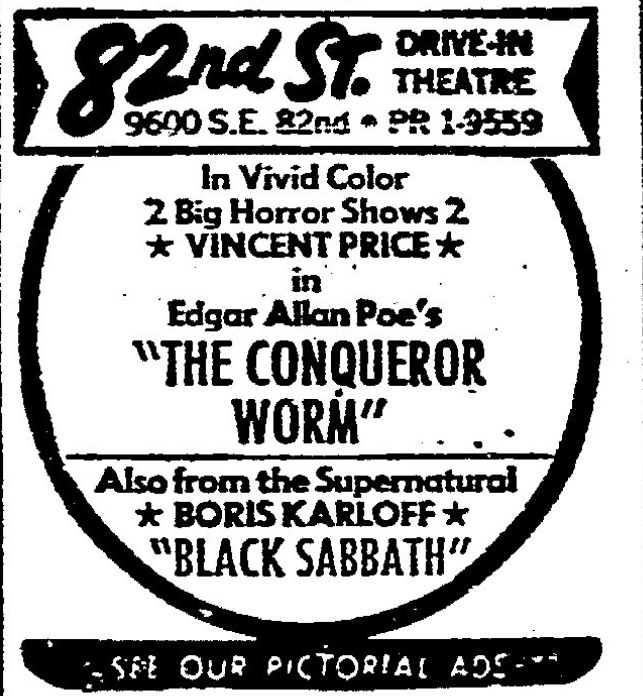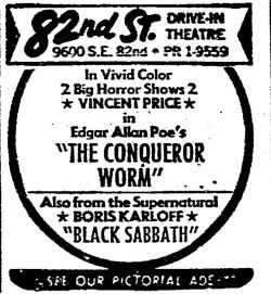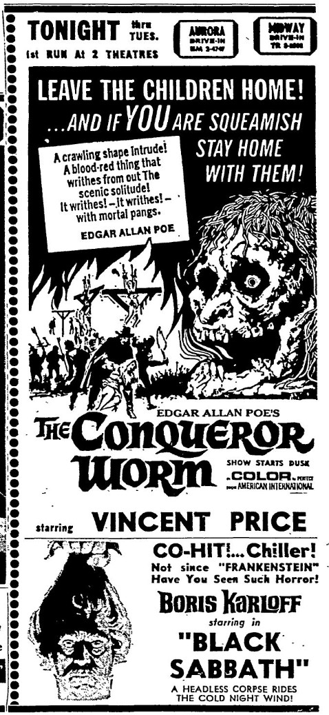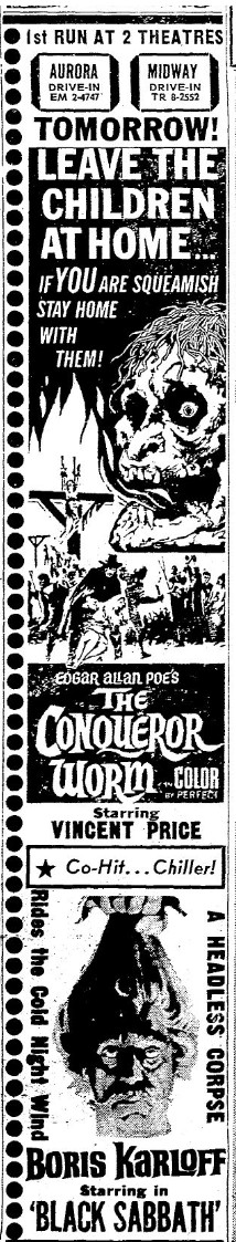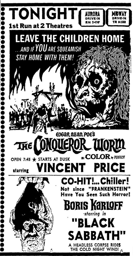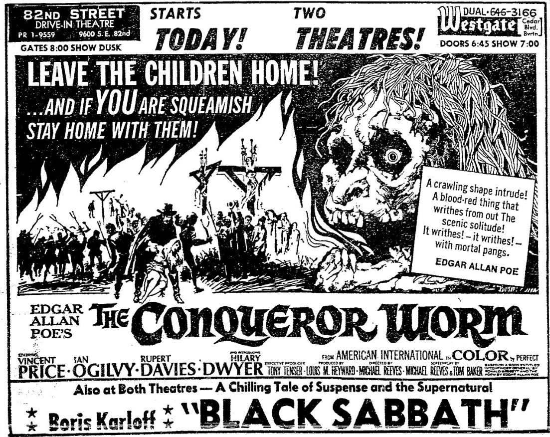 This is a collection of media from the initial runs of "The Conqueror Worm" (1968) in the Pacific Northwest. "Black Sabbath" (1963) was back as the second feature.