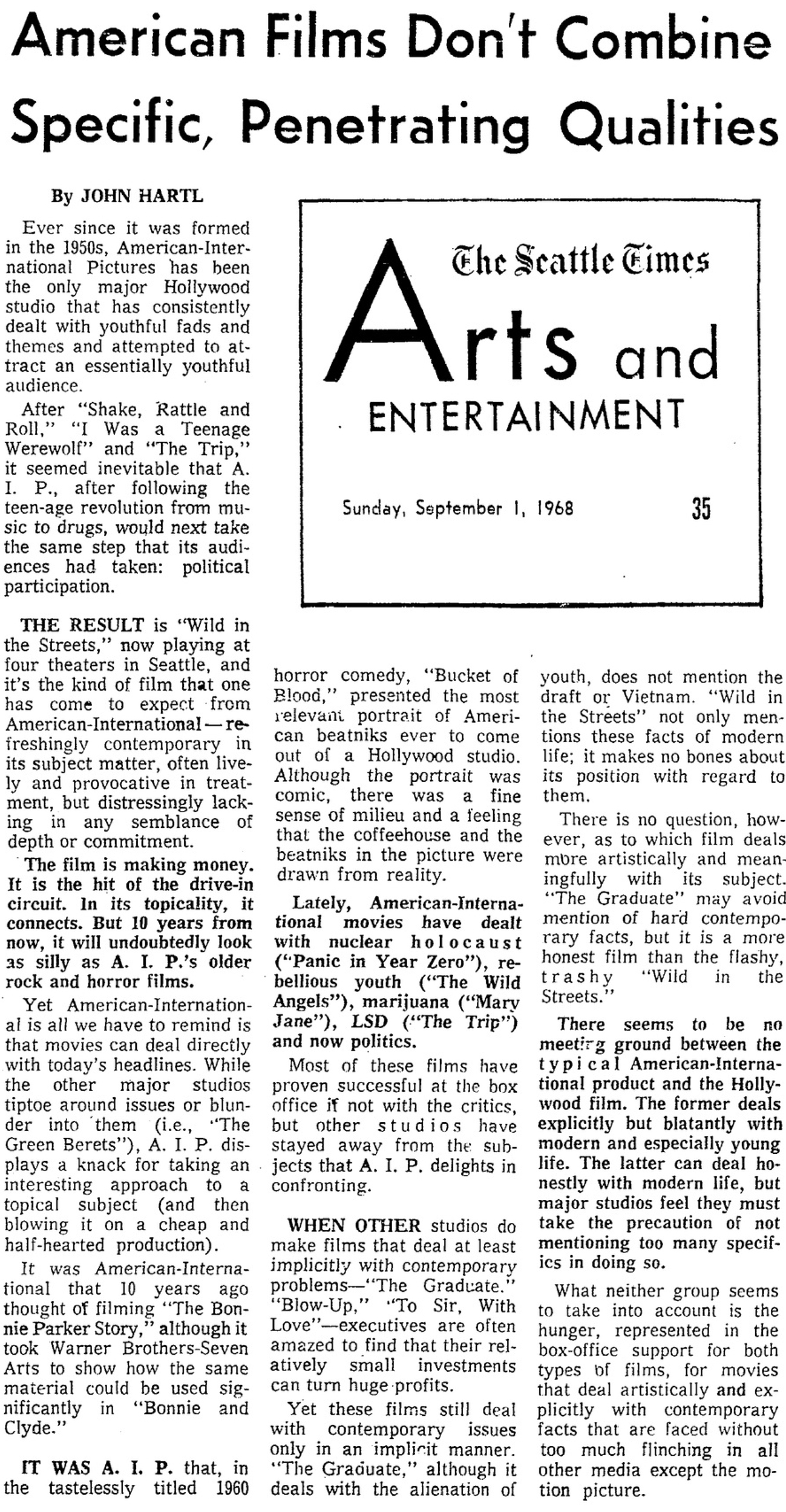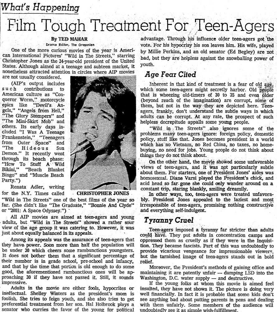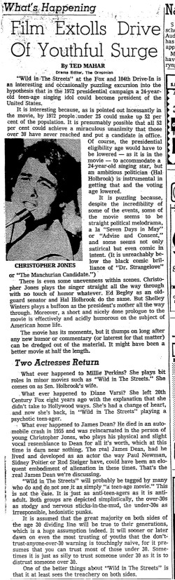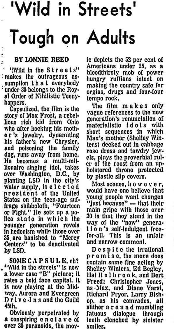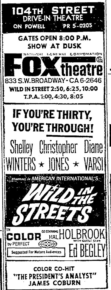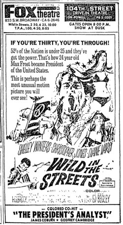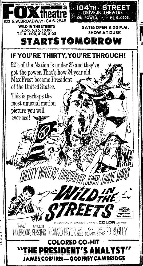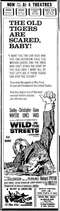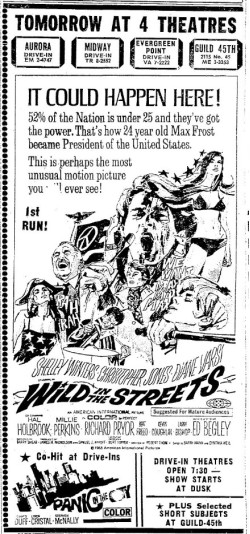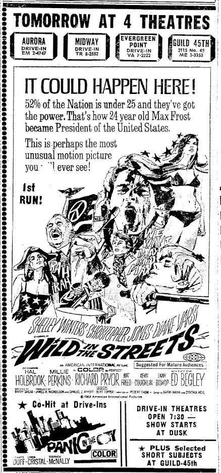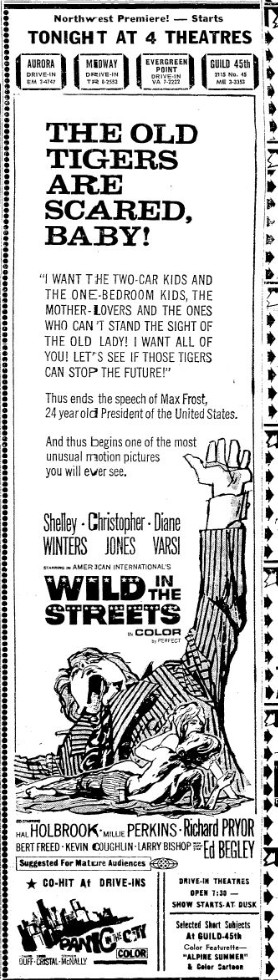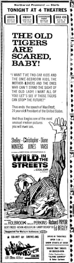 This is a collection of media from the initial runs of "Wild in the Streets" (1968) in the Pacific Northwest.