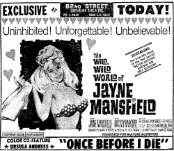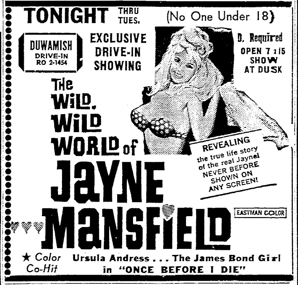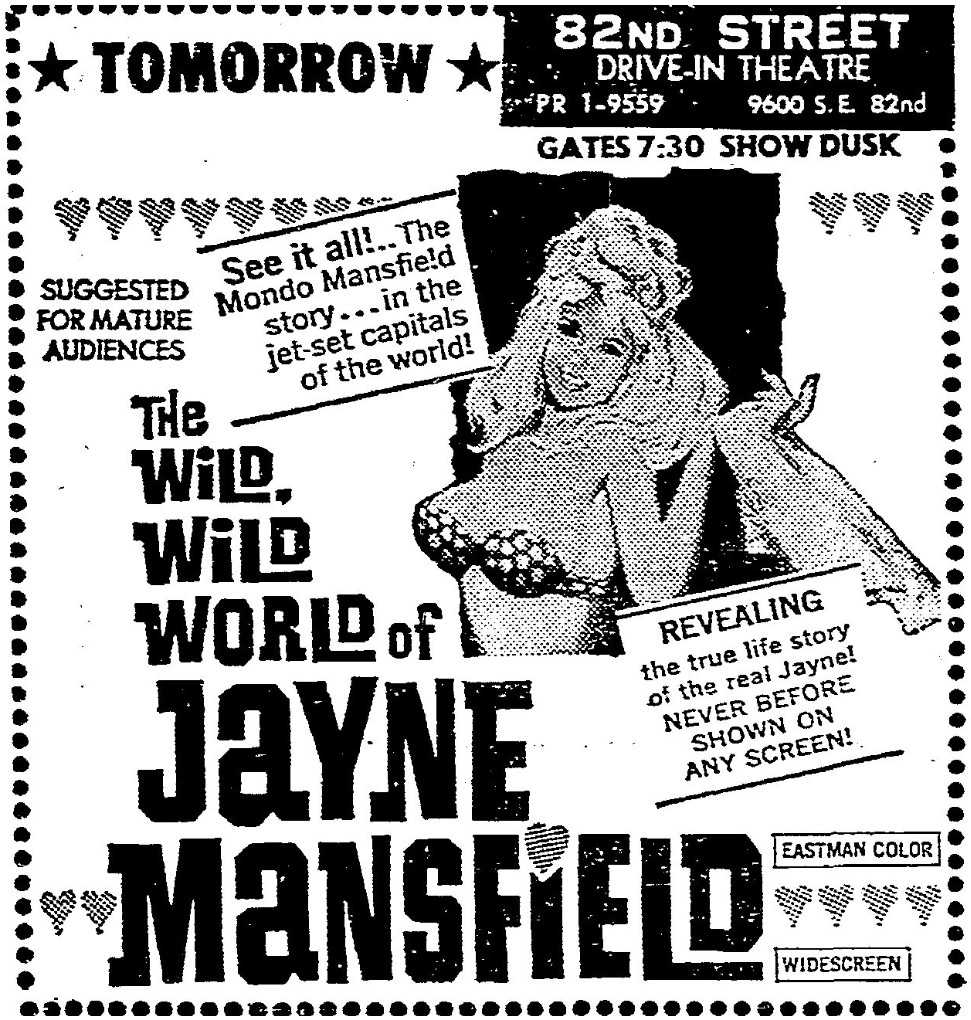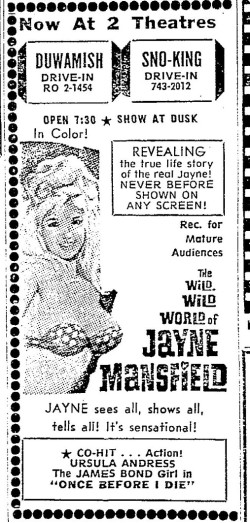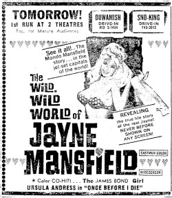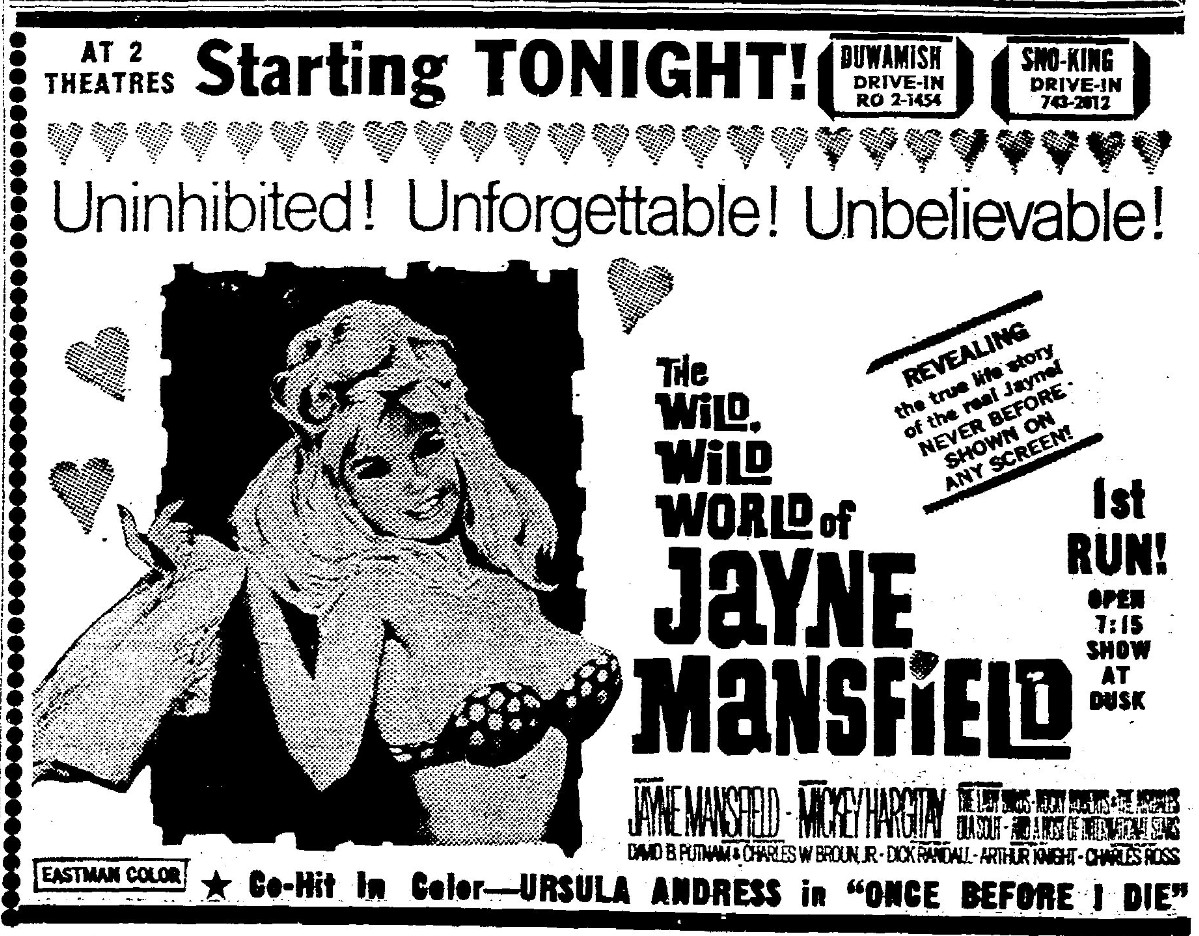 This is a collection of media from the initial runs of "The Wild Wild World of Jayne Mansfield" (1968) in the Pacific Northwest.