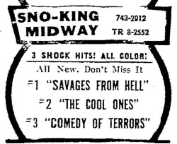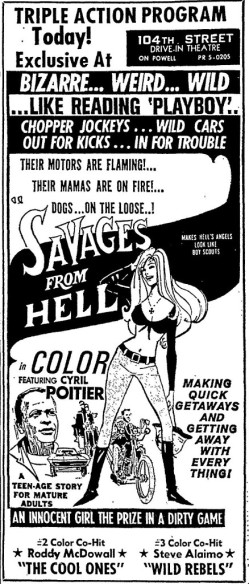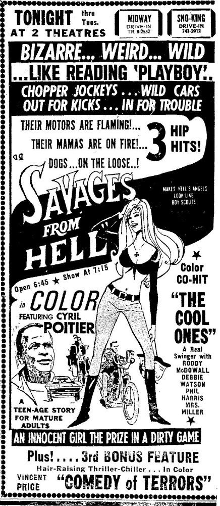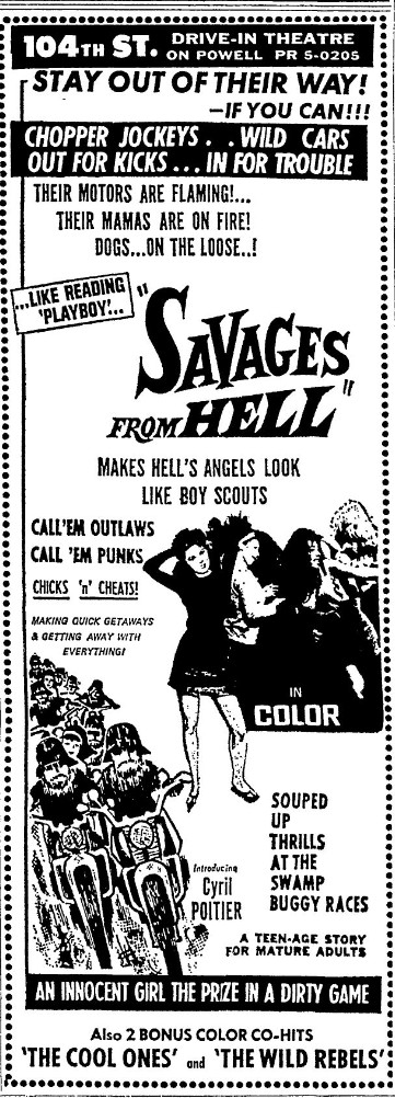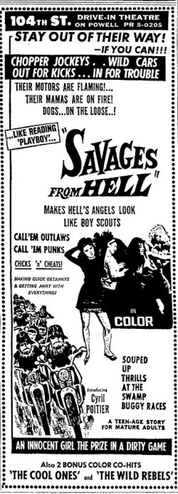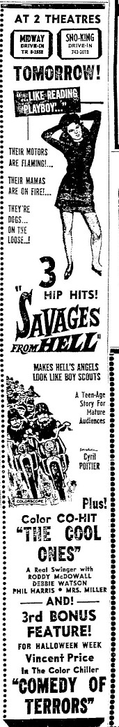 This is a collection of media from the initial runs of "Savages from Hell" (1968) and "The Cool Ones" (1967) in the Pacific Northwest.