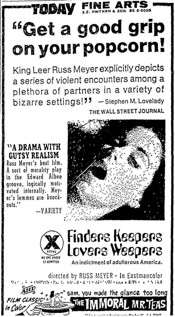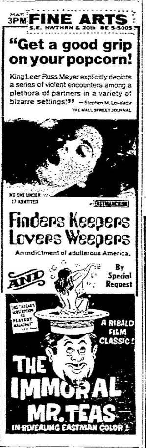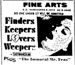 This is a collection of media from the initial runs of "Finders Keepers, Lovers Weepers!" (1968) in the Pacific Northwest.