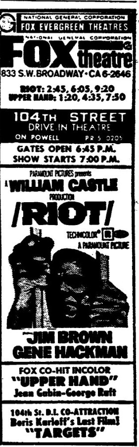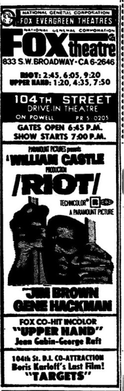 This is a collection of media from the initial runs of "Riot" (1969) in the Pacific Northwest.