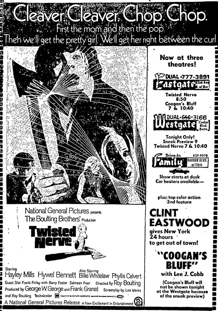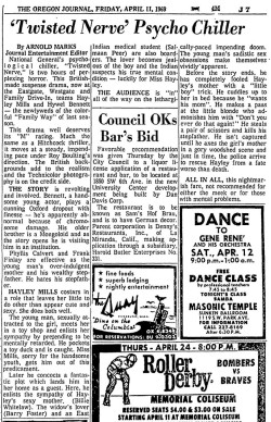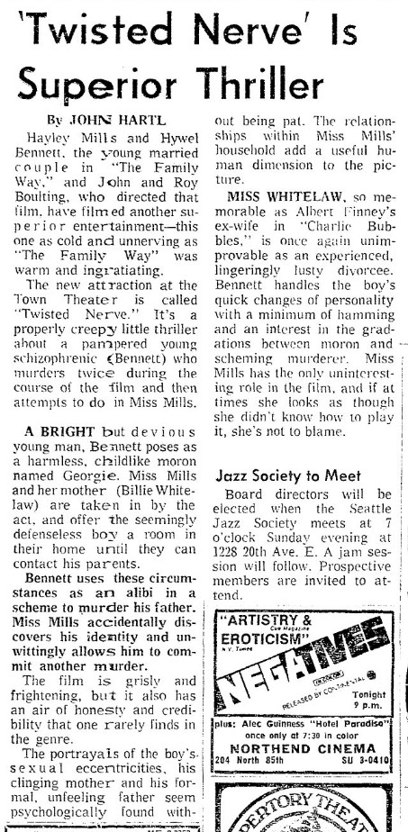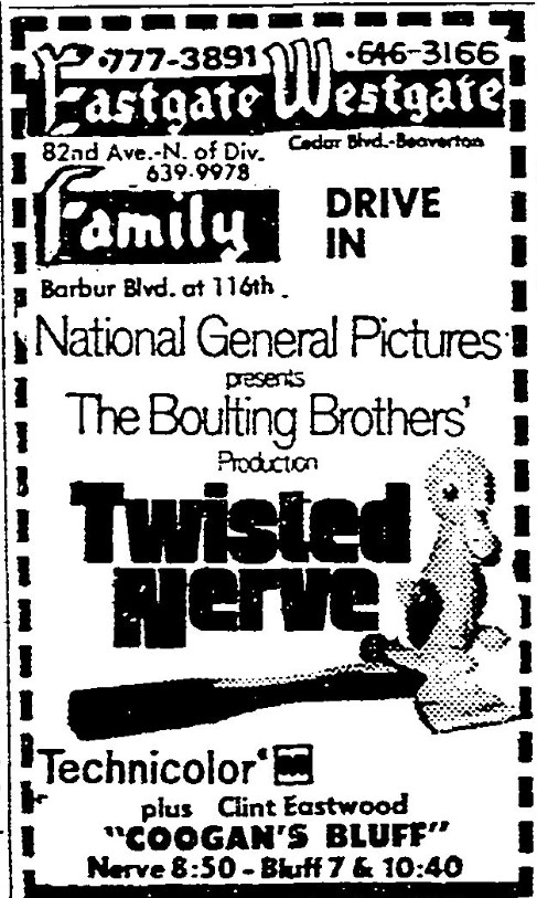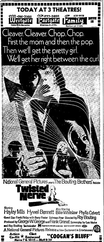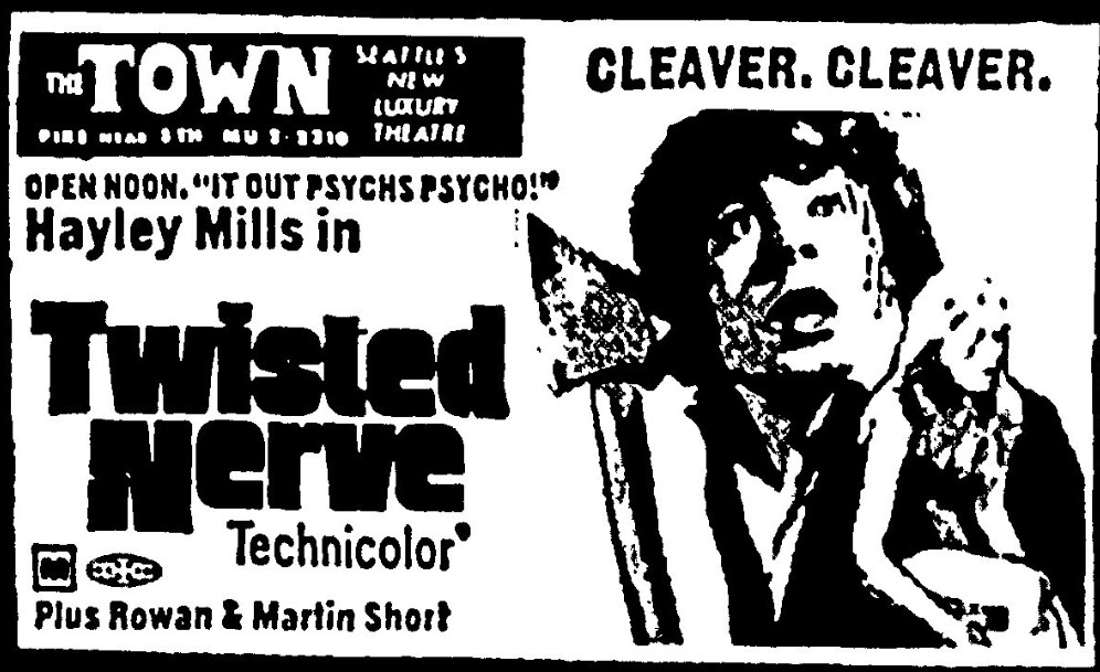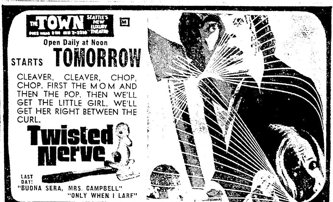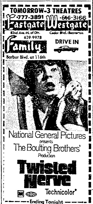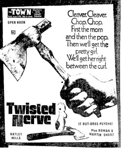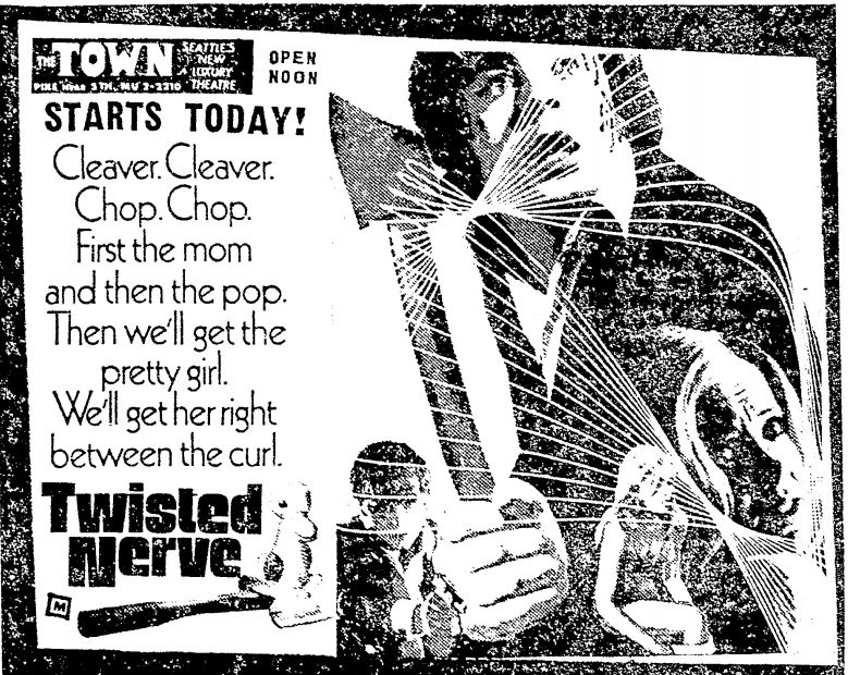 This is a collection of media from the initial runs of "Twisted Nerve" (1968) in the Pacific Northwest.