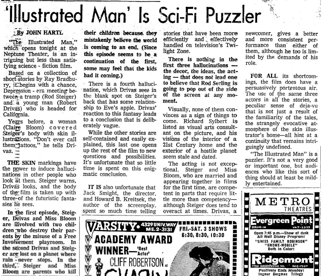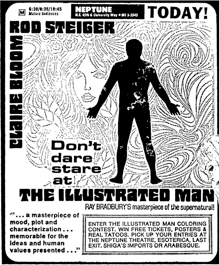 This is a collection of media from the initial runs of "The Illustrated Man" (1969) in the Pacific Northwest.