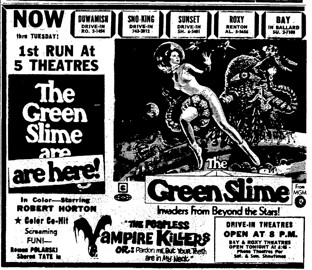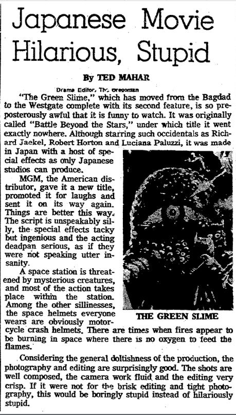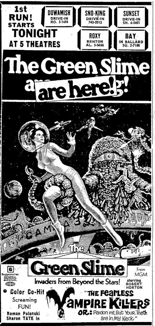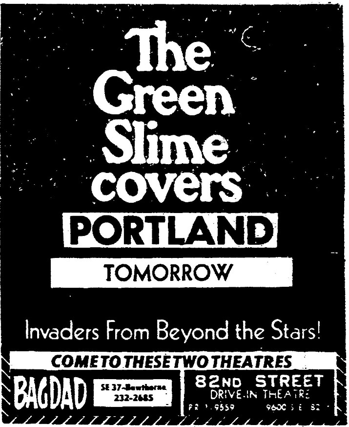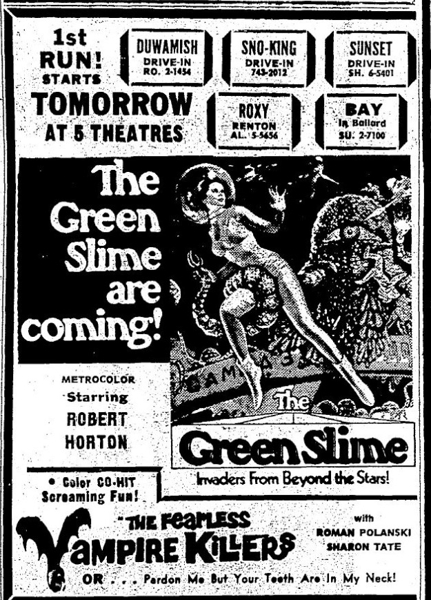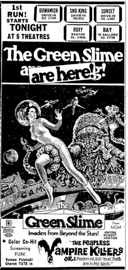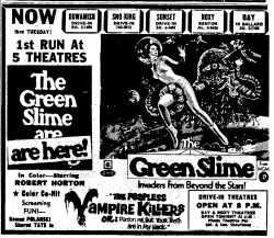 This is a collection of media from the initial runs of "The Green Slime" (1968) in the Pacific Northwest.