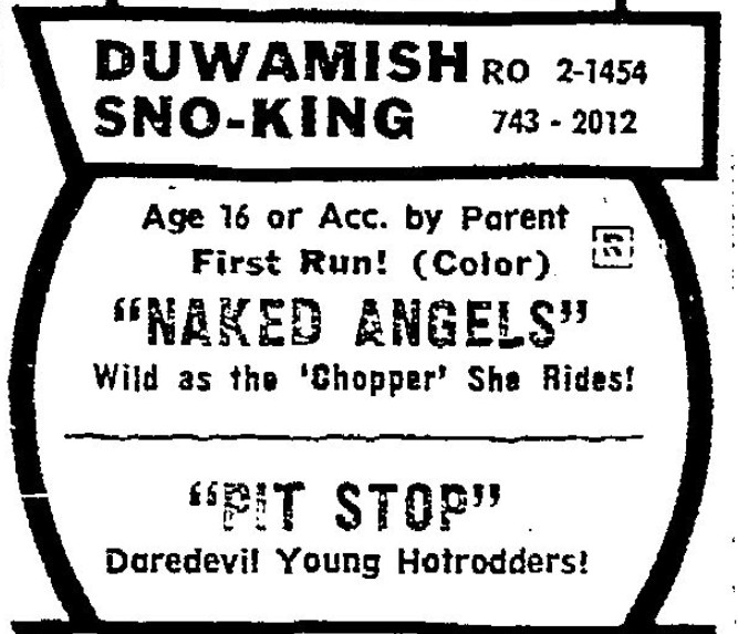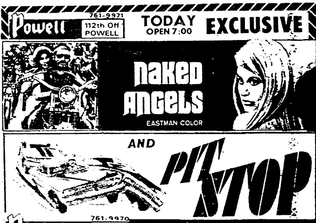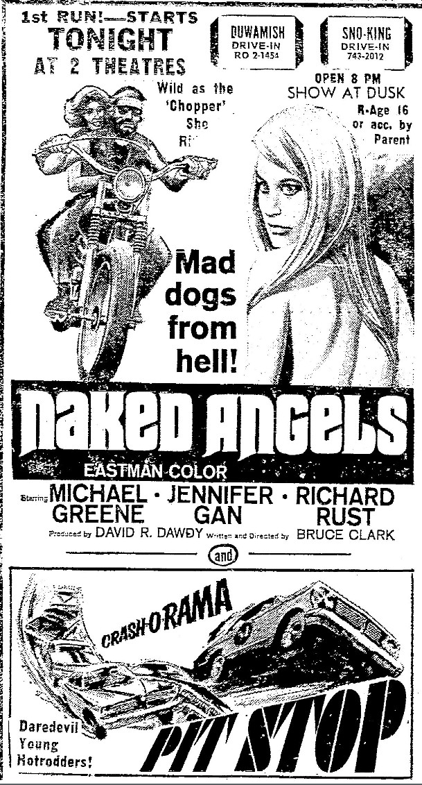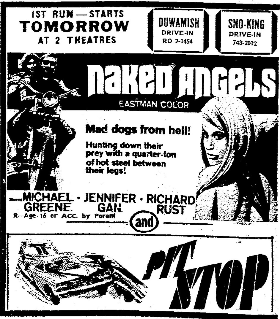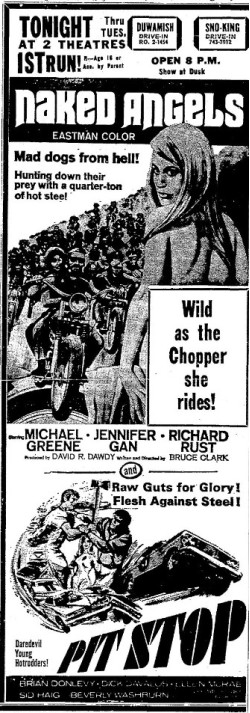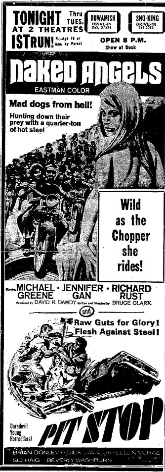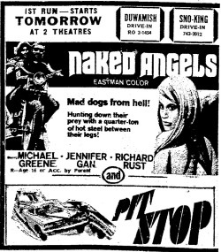 This is a collection of media from the initial runs of "Naked Angels" and "Pit Stop" ( both 1969) in the Pacific Northwest.