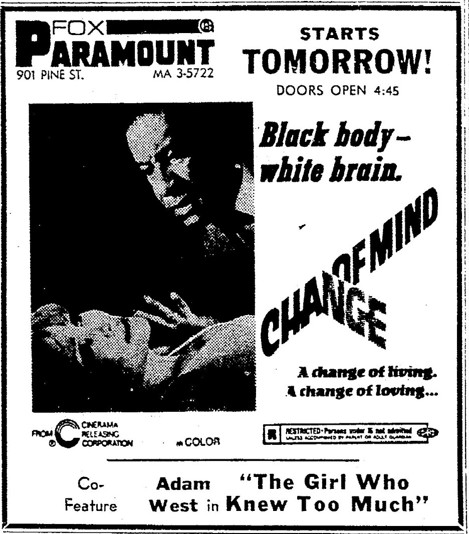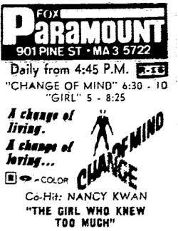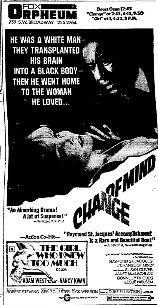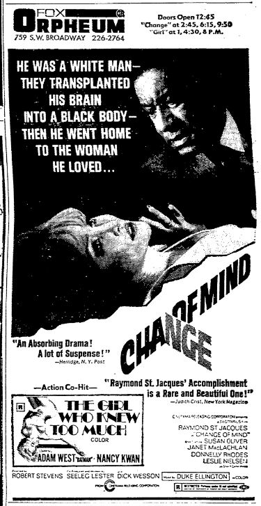 This is a collection of media from the initial runs of "Change of Mind" (1969) in the Pacific Northwest.