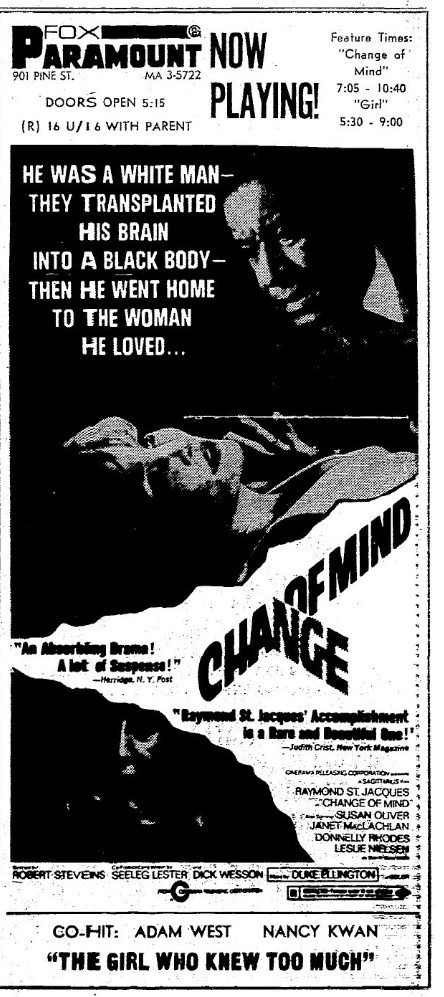 Despite these shortcomings, "Change of Mind" remains a compelling artifact of late‑1960s American cinema. Its willingness to confront racial identity through speculative storytelling reflects both the era’s anxieties and its aspirations for social progress. While its approach may feel dated to modern viewers, the film’s sincerity and intellectual curiosity give it lasting historical and cultural interest. It stands as an earnest attempt to use genre cinema as a mirror for societal self‑examination, revealing both the possibilities and the constraints of its time.